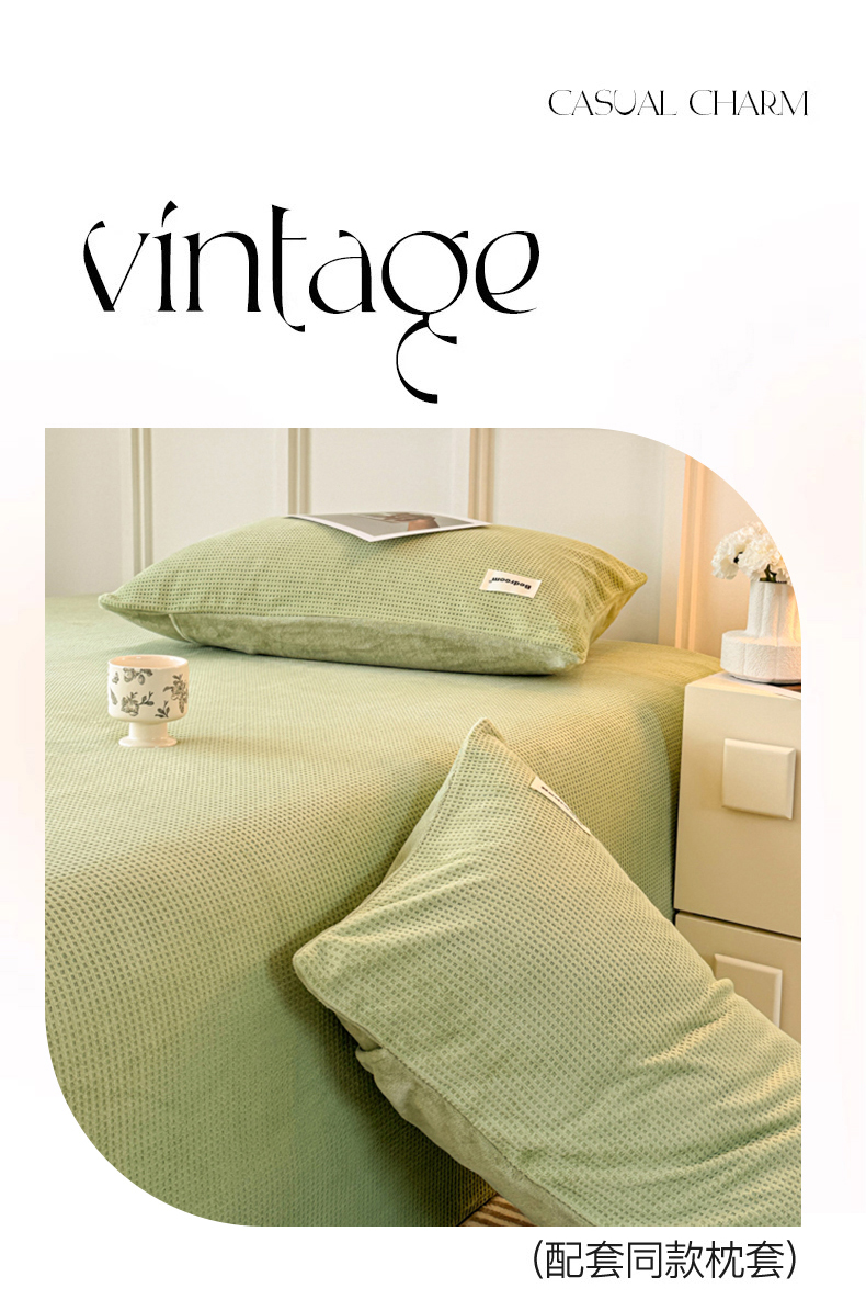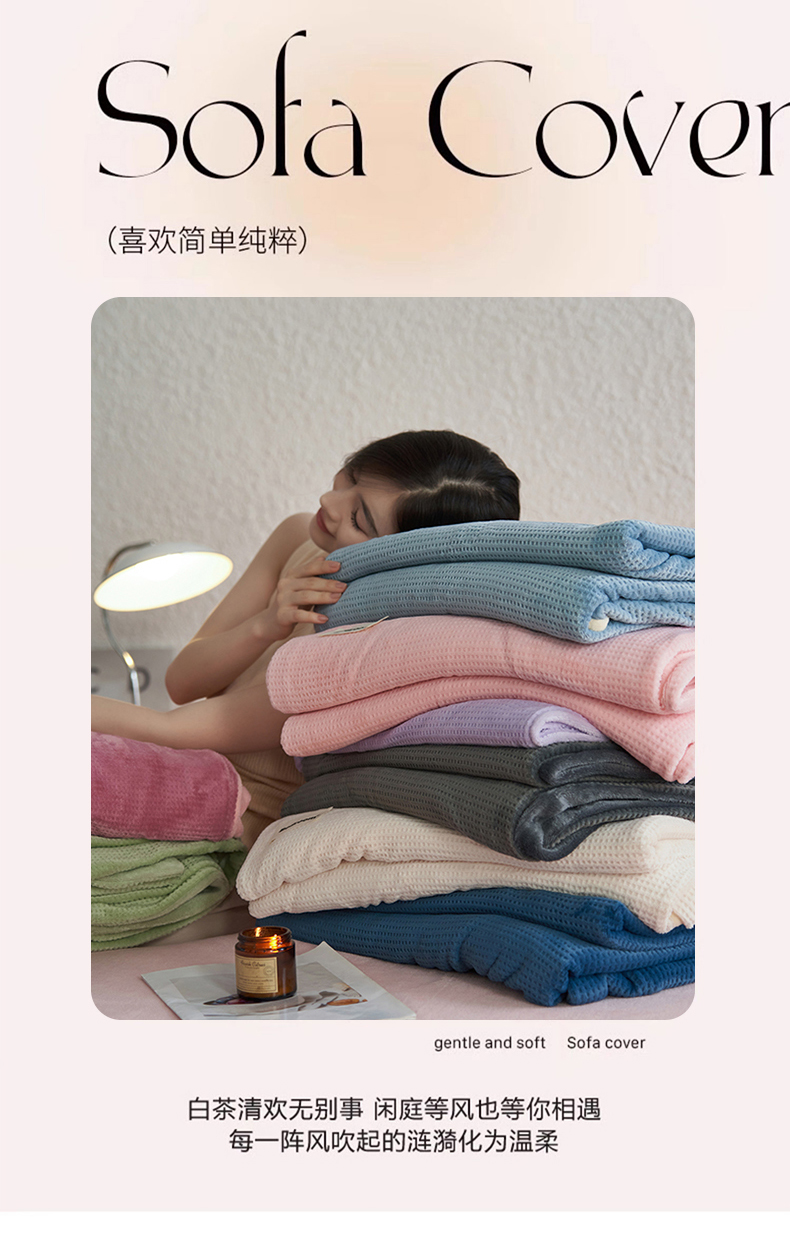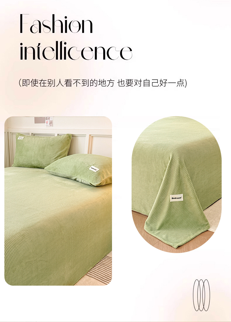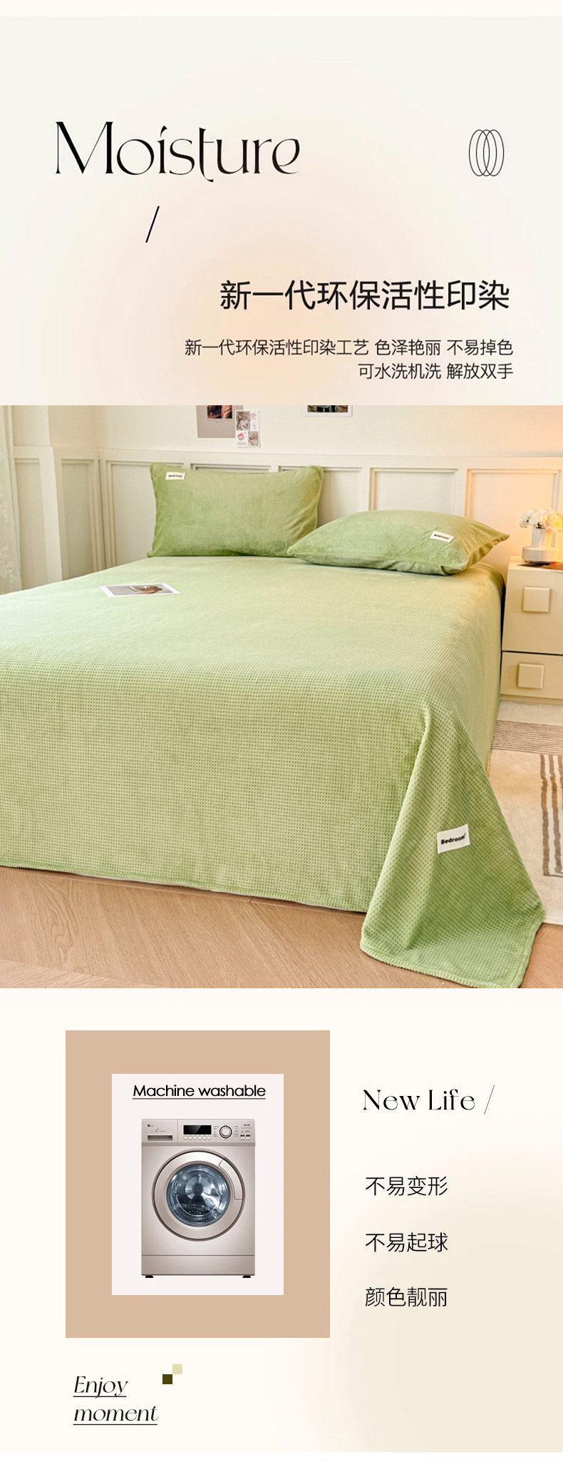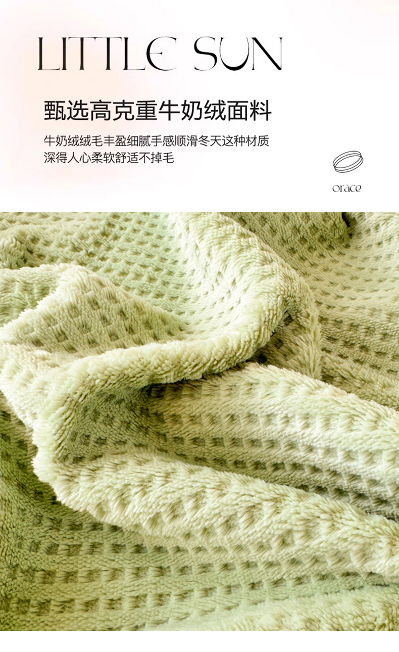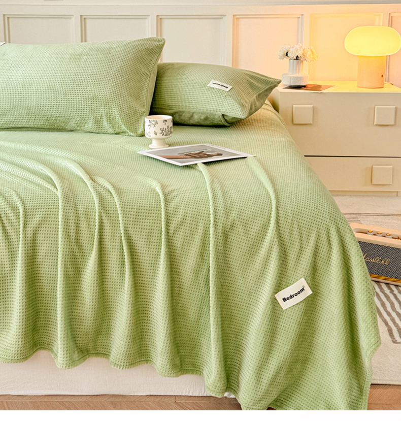 • 91家纺网 家纺一手货源 找家纺 眠博士 2025新款A类华夫格剪花牛奶绒床单多功能盖毯 剪花床单-苹果绿