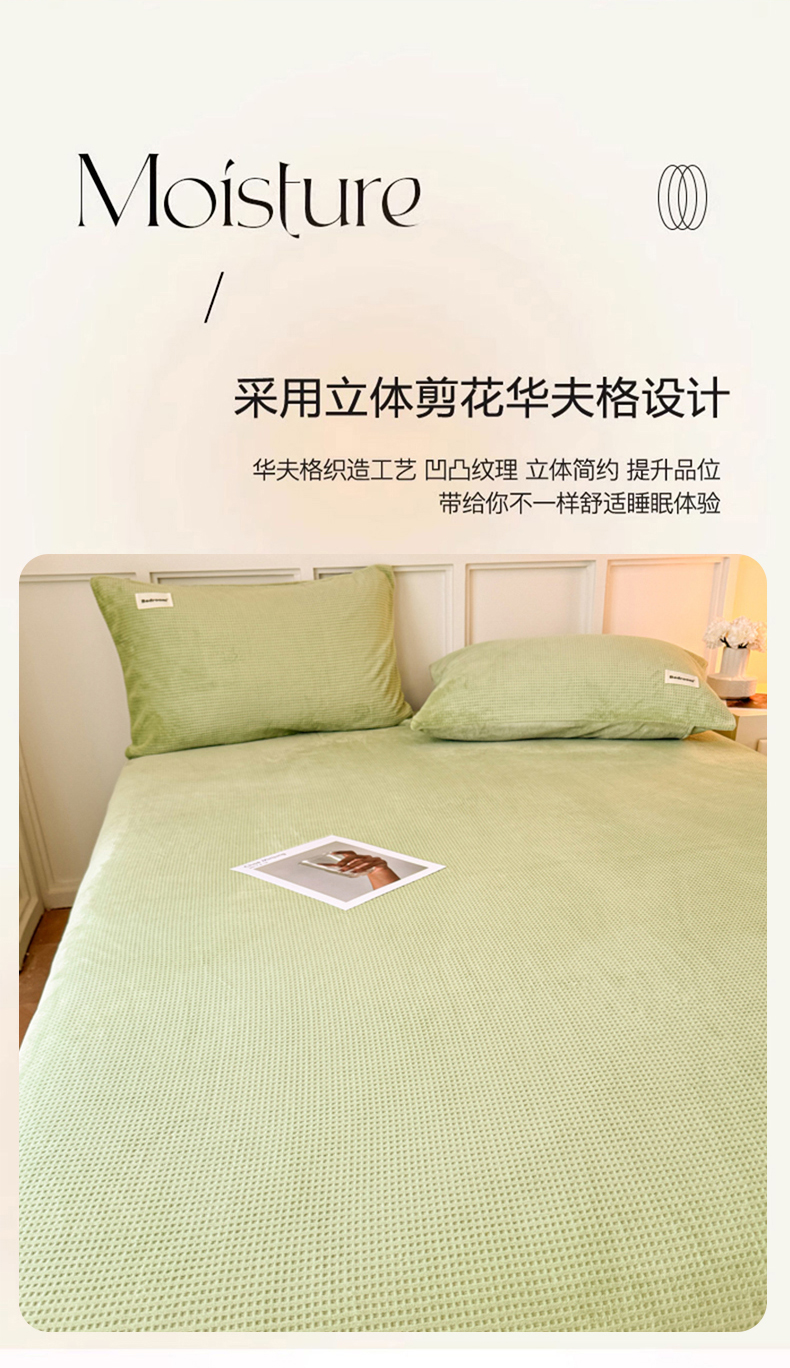 当前位置: 91家纺网 > 商品网购 > 床上用品 > 床单 > 眠博士 2025新款A类华夫格剪花牛奶绒床单多功能盖毯 剪花床单-苹果绿