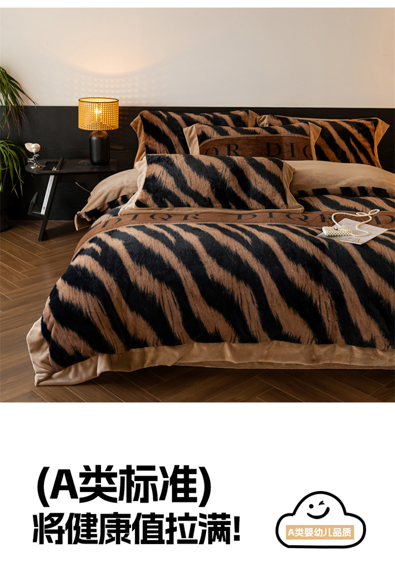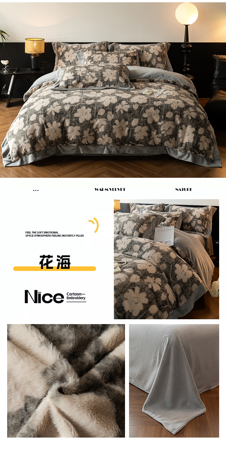 商品名称:启程家纺 2025新款A类加厚兔毛220克牛奶绒拼角四件套 迷踪灰