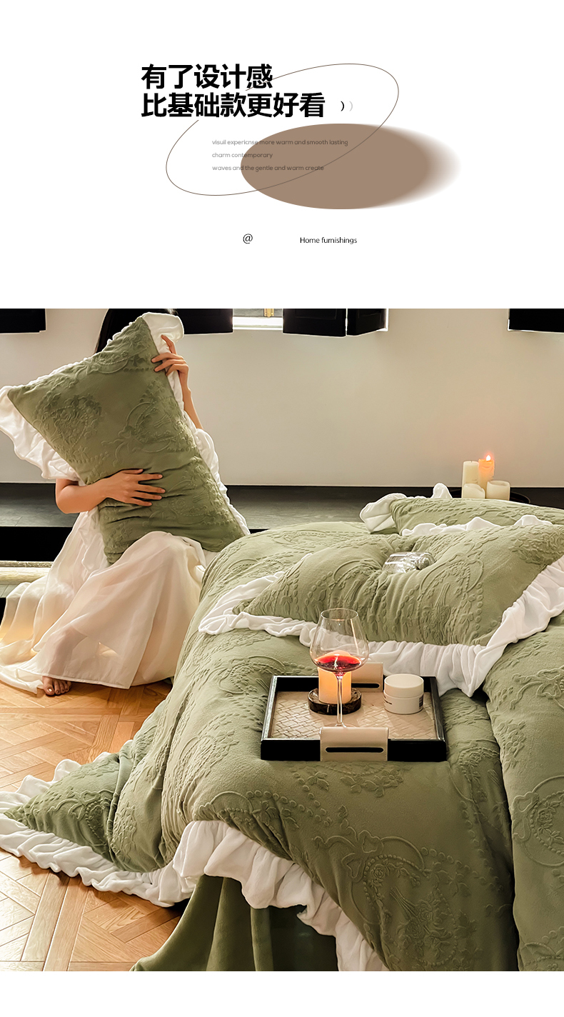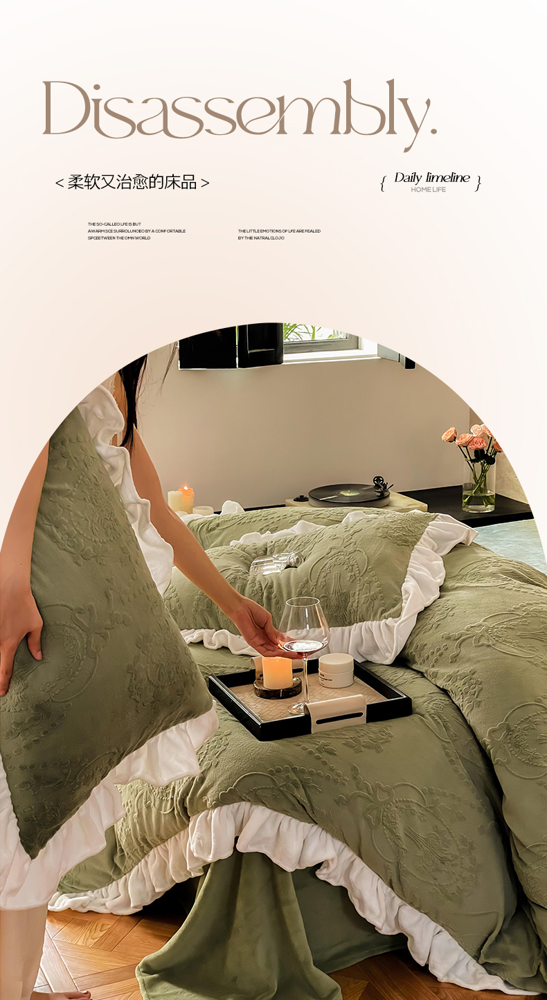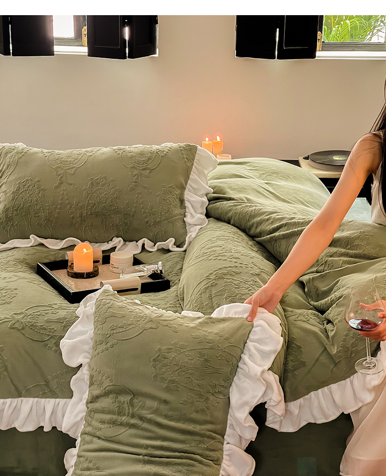 当前位置: 91家纺网 > 商品网购 > 床品套件 > 四件套 > 牛奶绒四件套 > 六巷胡同 2025新款韩系手捧花轻法式花边款牛奶绒四件套-风格二 手捧花-绿