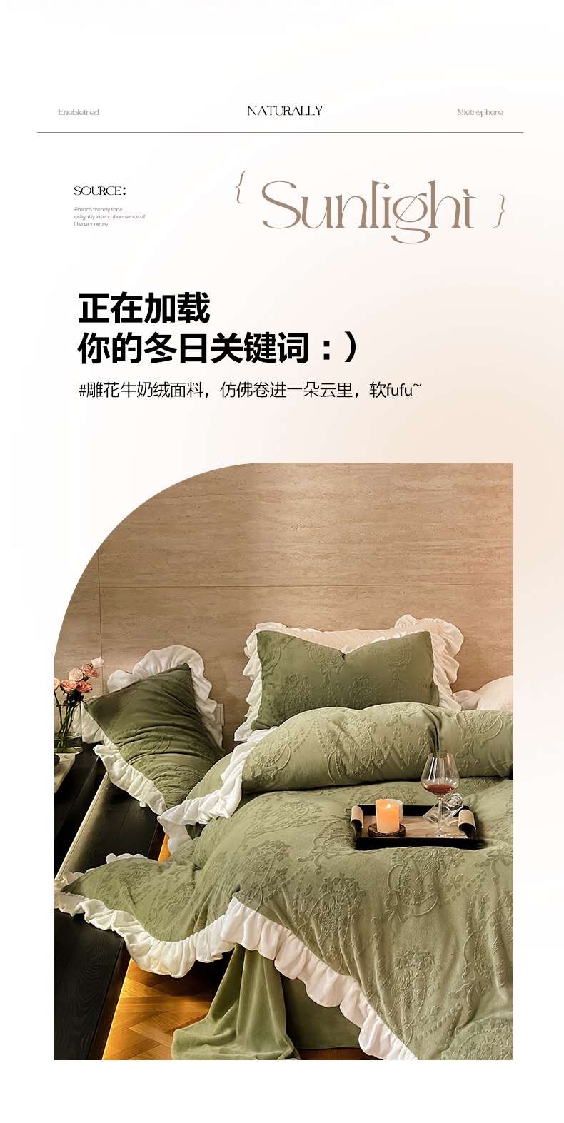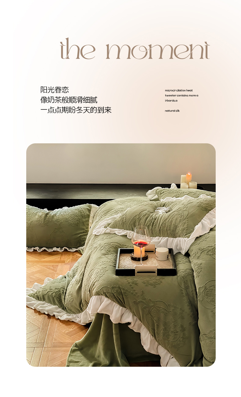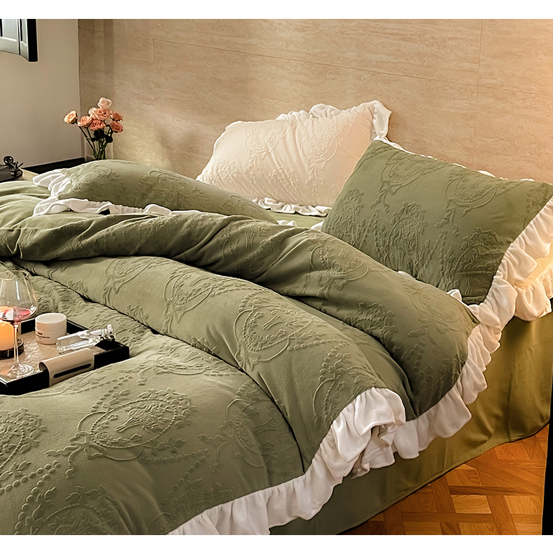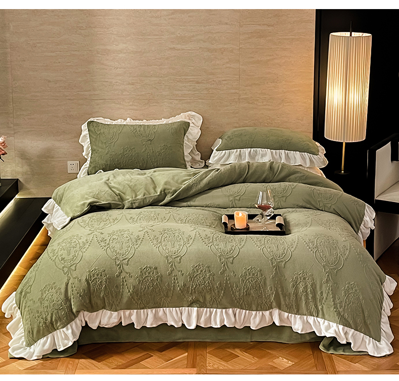 当前位置: 91家纺网 > 商品网购 > 床品套件 > 四件套 > 牛奶绒四件套 > 六巷胡同 2025新款韩系手捧花轻法式花边款牛奶绒四件套-风格二 手捧花-绿