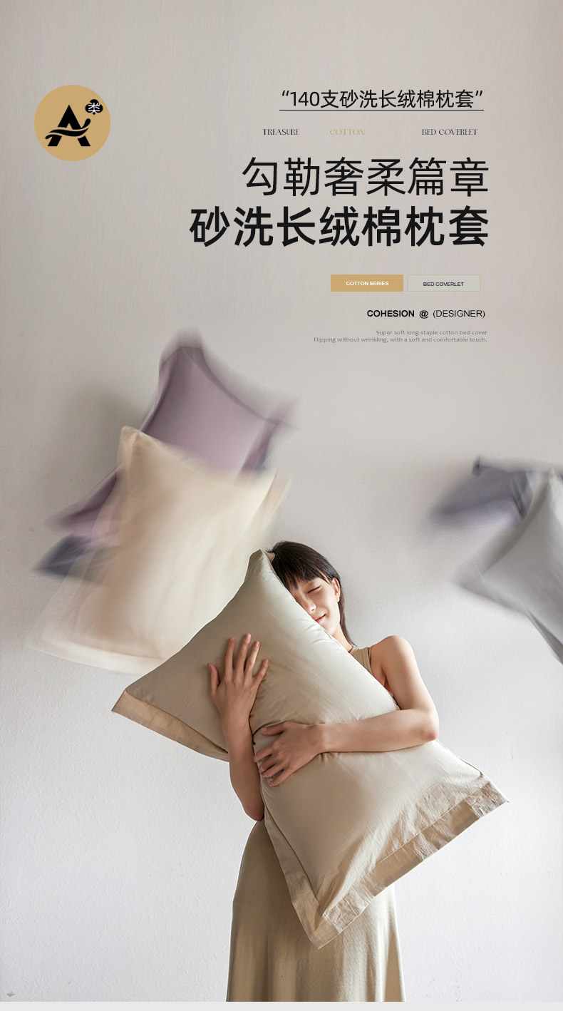 (总)轩和家居 2025新款70S砂洗长绒棉枕套,芦暖,松烟,烟凝,云水,组合