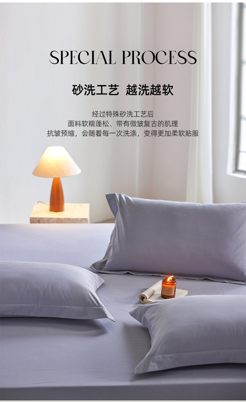 (总)轩和家居 2025新款70S砂洗长绒棉单床笠,芦暖,松烟,烟凝,云水,床笠组合