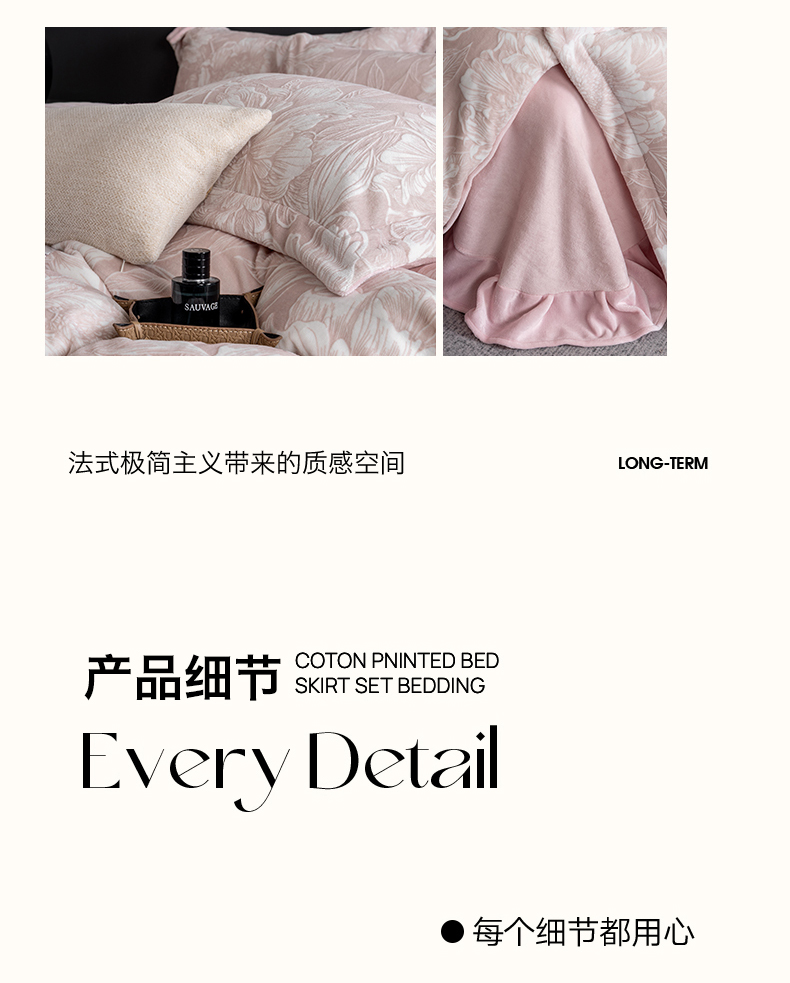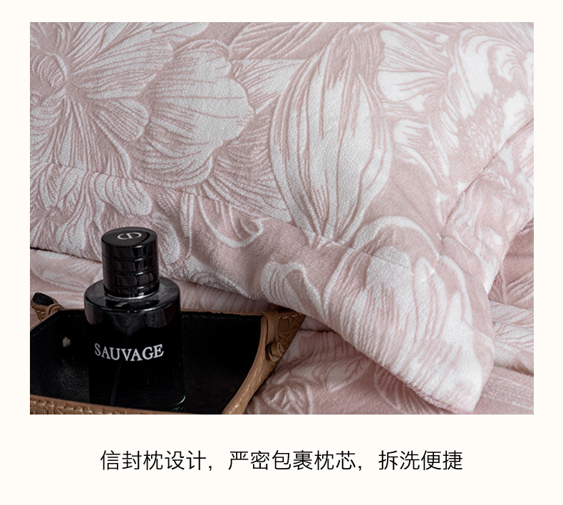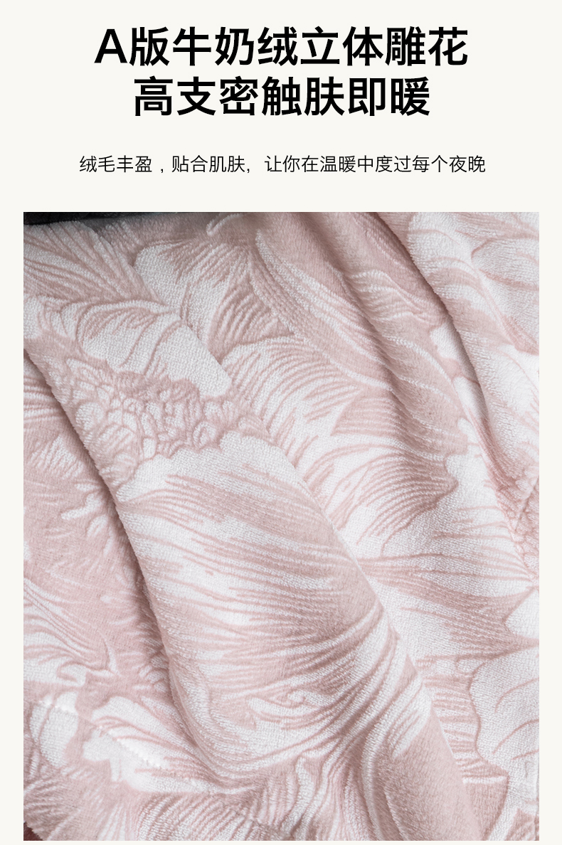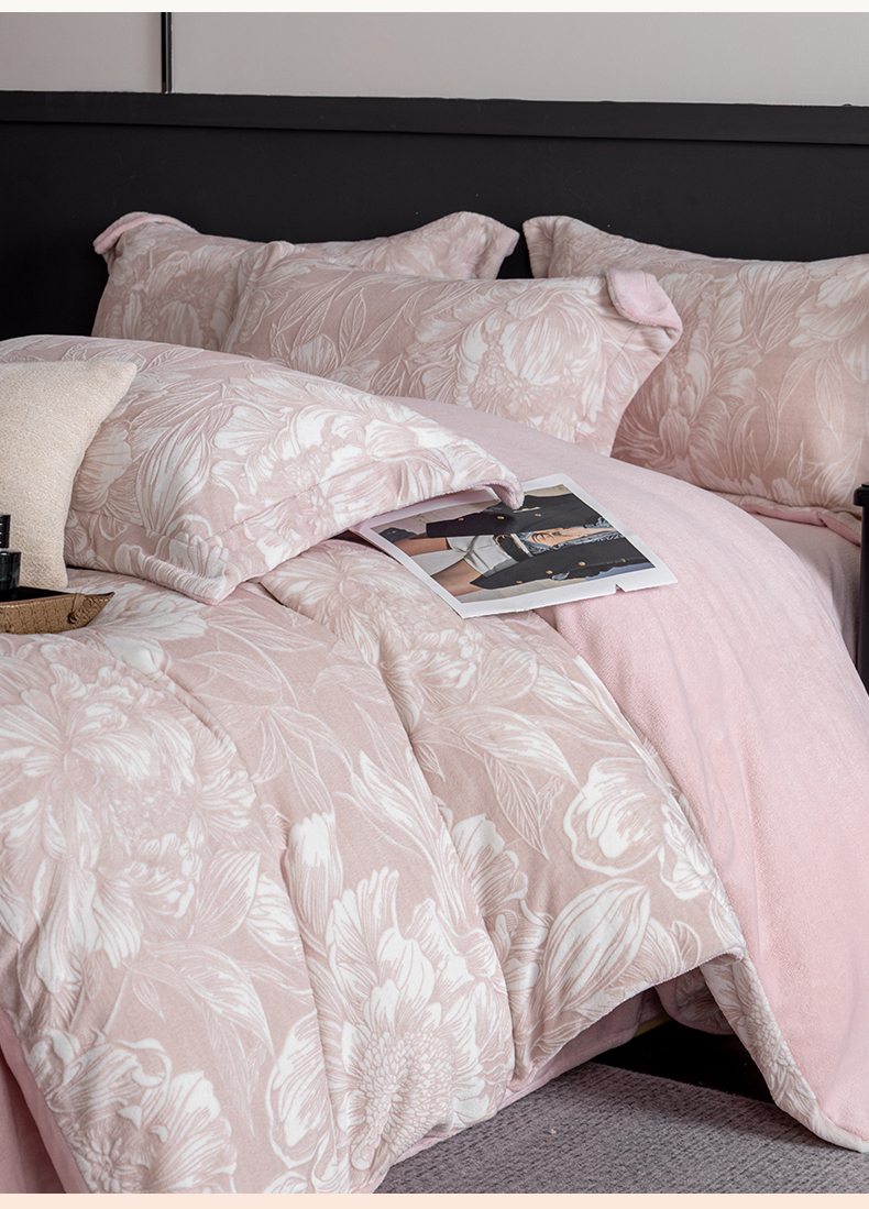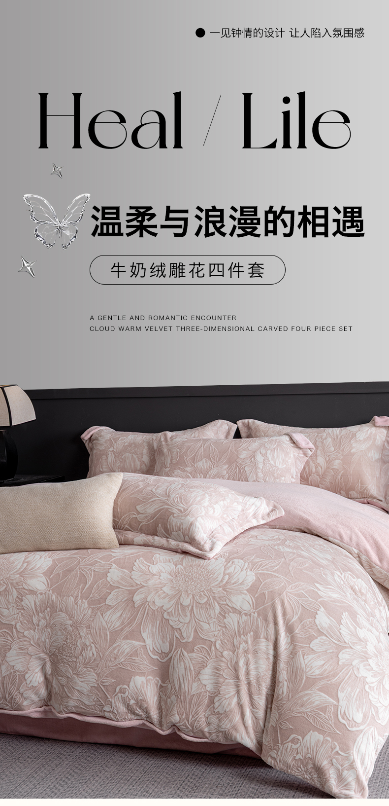 商品名称:罗优家纺 2025新款牛奶绒雕花绒四件套 芳华绮丽-粉