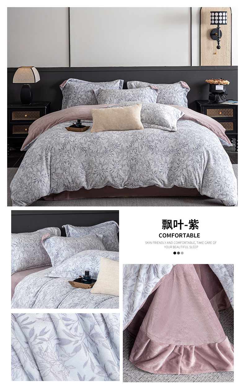 (总)罗优家纺 2025新款柔暖皱幔款暖绒四件套,浅粉,浅灰,浅蓝,浅杏