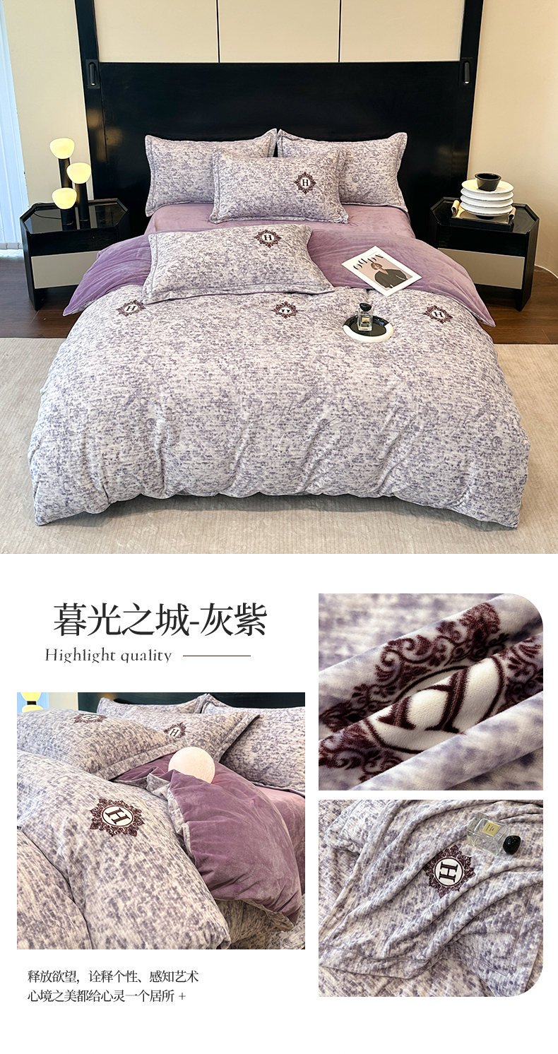 商品名称:喜四方 2025新款超细旦婴儿宝宝绒印花四件套 暮光之城-灰紫