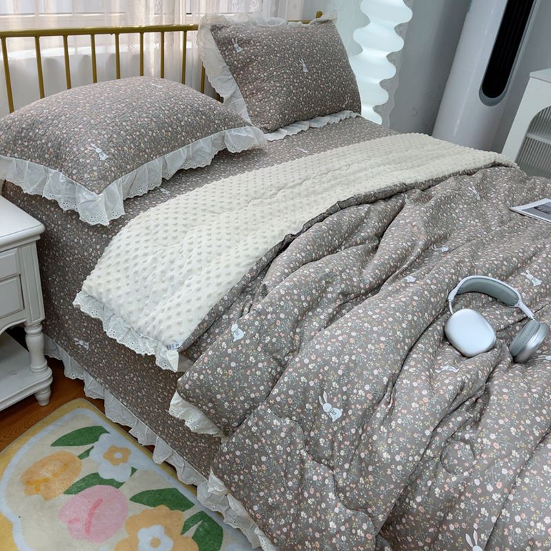 (总)暖居 2026新款一面纯棉一面绒床盖+同款纯棉豆豆被跑量,兰意,冰淇淋,绿芽,奶油波罗,森系绿野,疏影,樱桃密果,黑巧豹纹,小花,星月