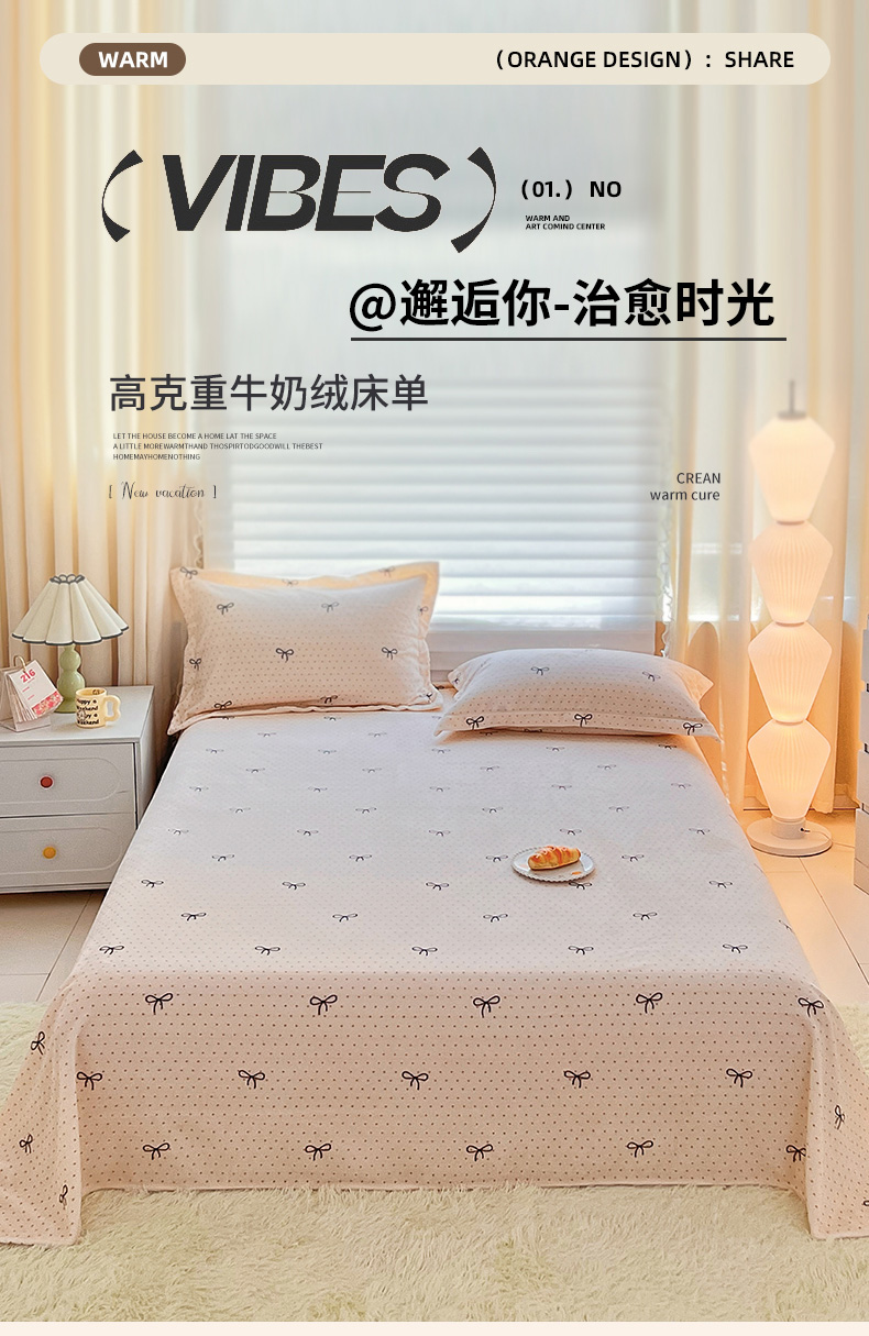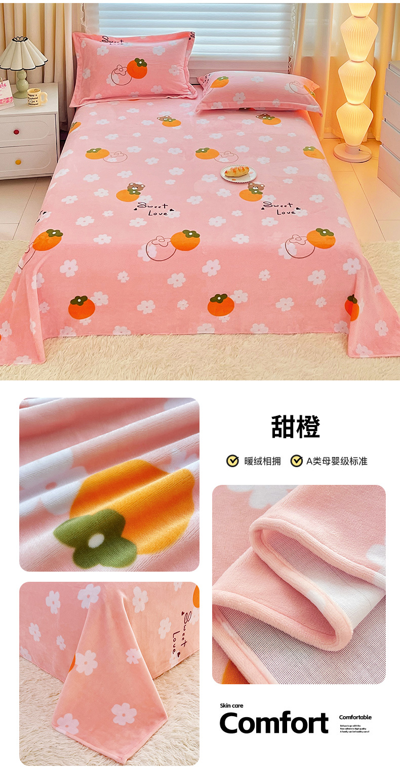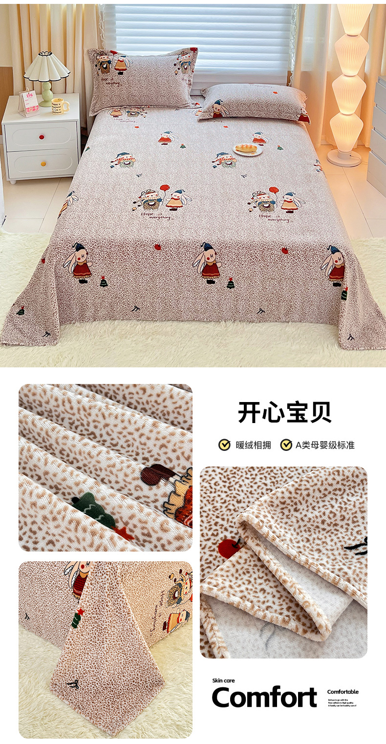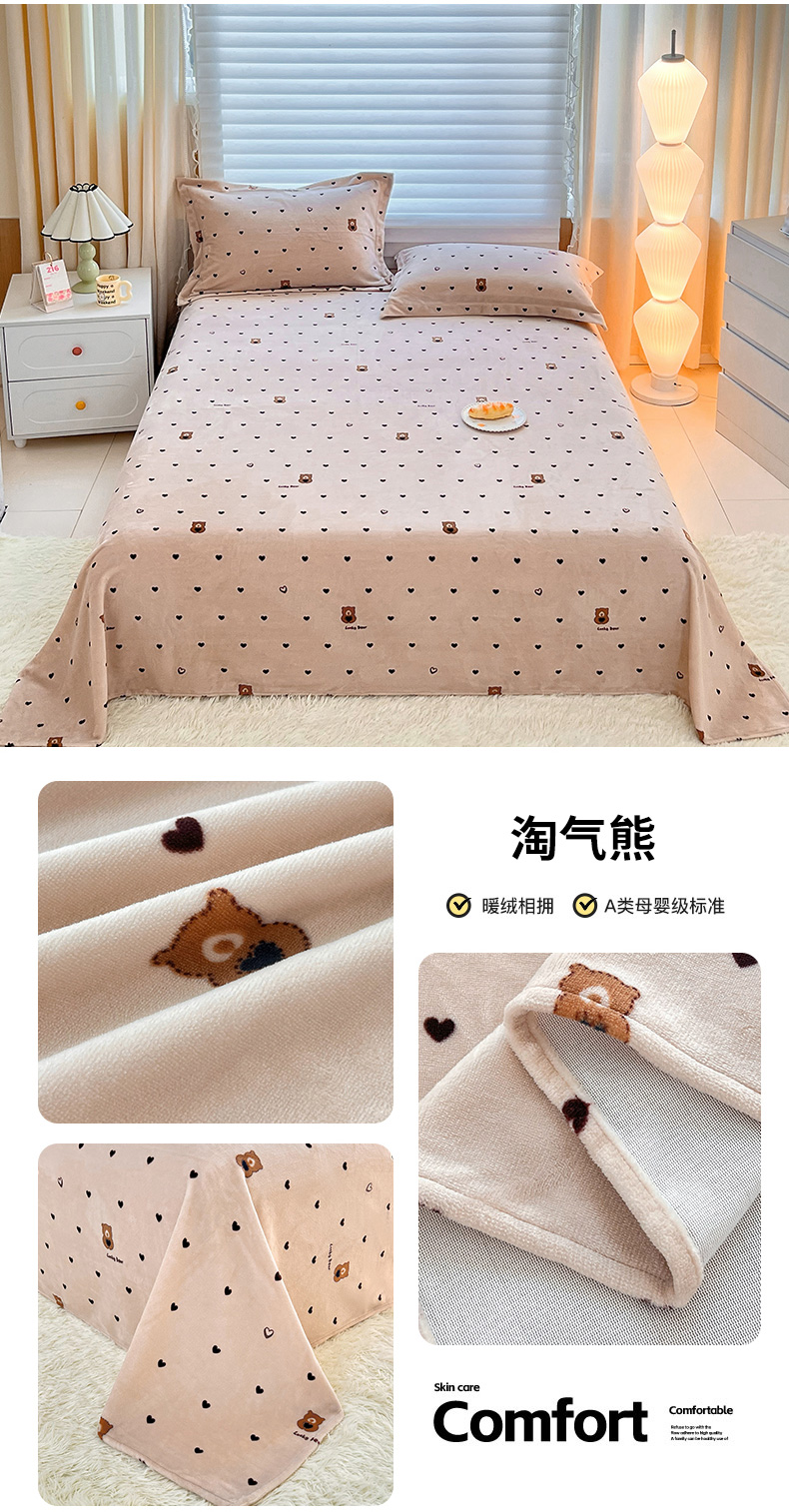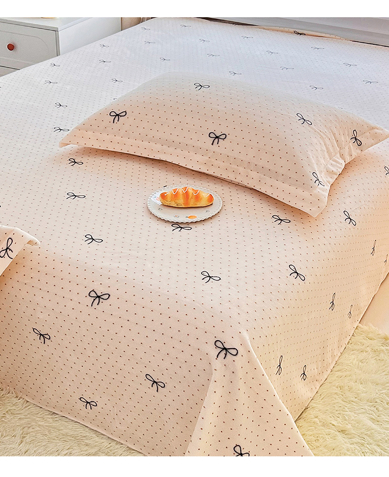 商品名称:锦罗绣 2025新款230克牛奶绒印花单床单 爱心结