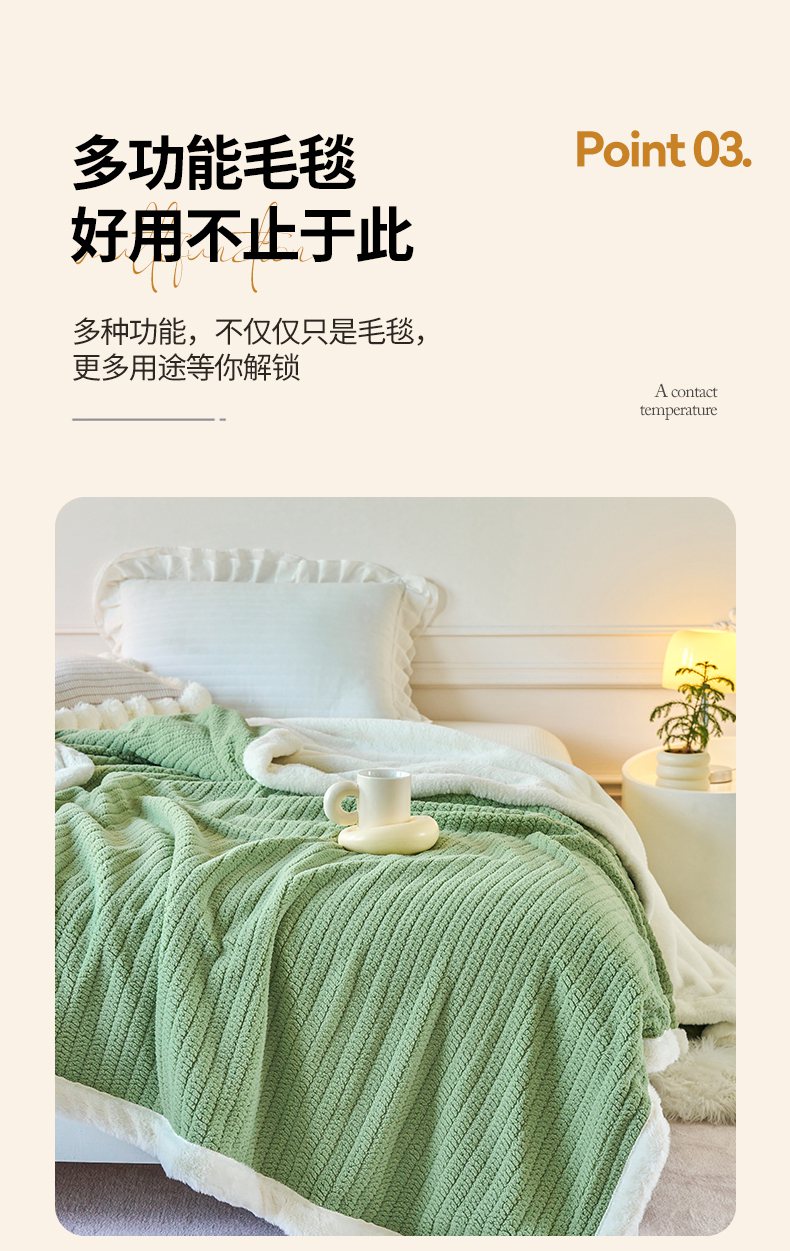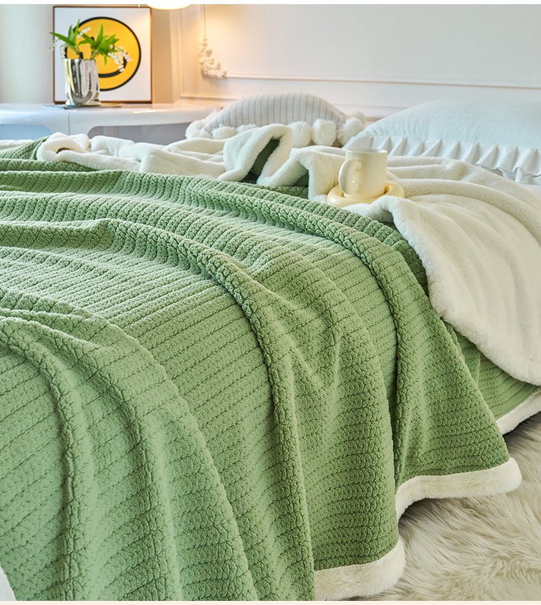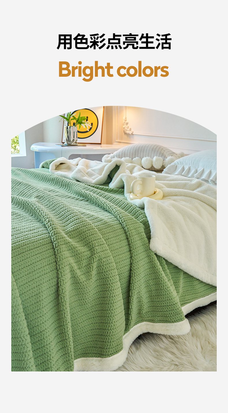 畅畅家纺 2025新款A面编织绒B面兔毛绒纯色春秋冬毛毯盖毯 湖水蓝
