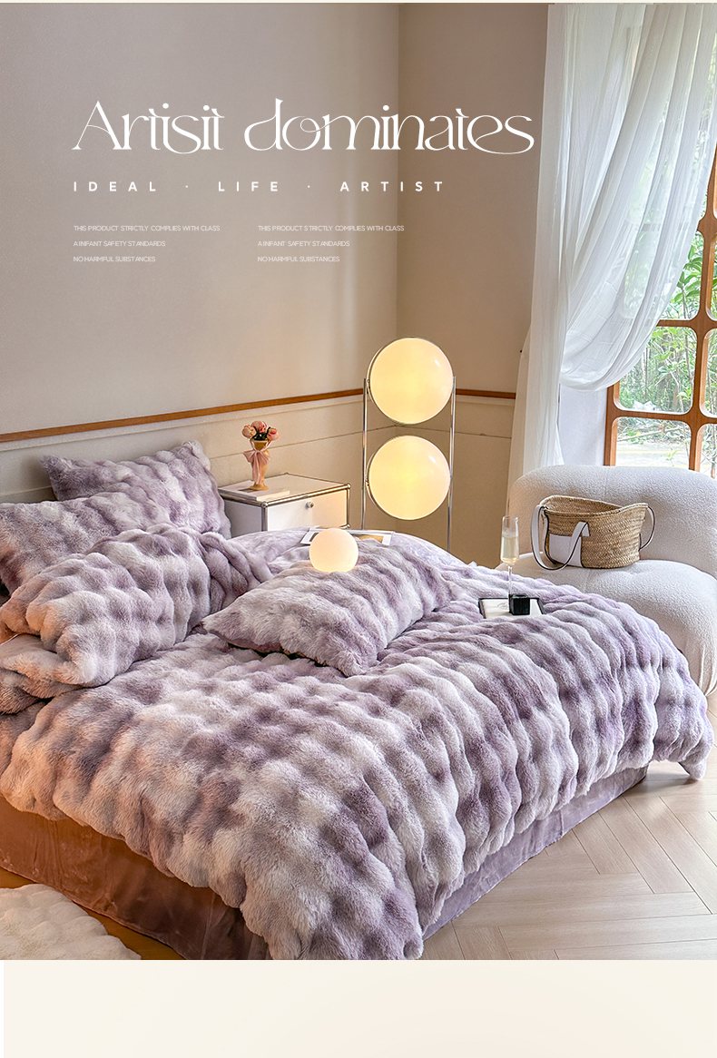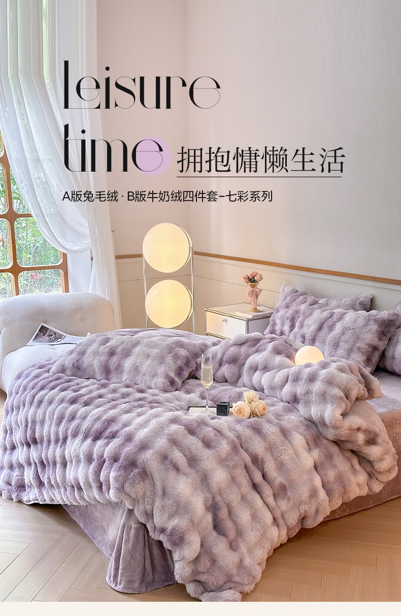 (总) 畅畅家纺 2023新款加厚AB版大泡泡绒皮草兔毛四件套,大泡泡高贵紫,大泡泡果粉,大泡泡果绿,大泡泡卡其,大泡泡奶白咖,大泡泡烟灰