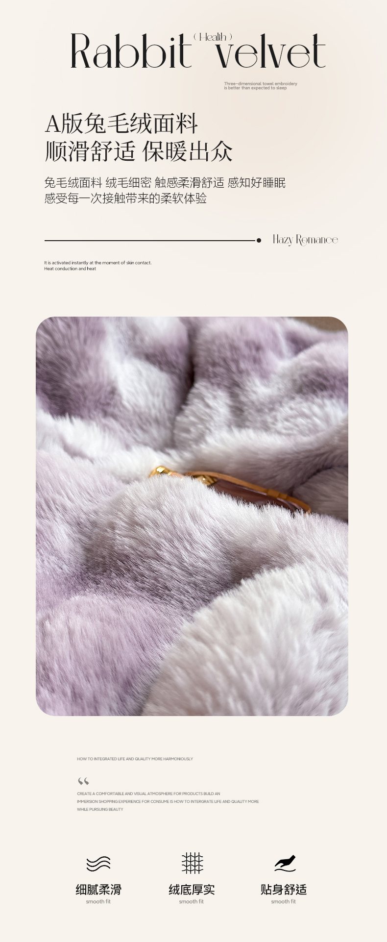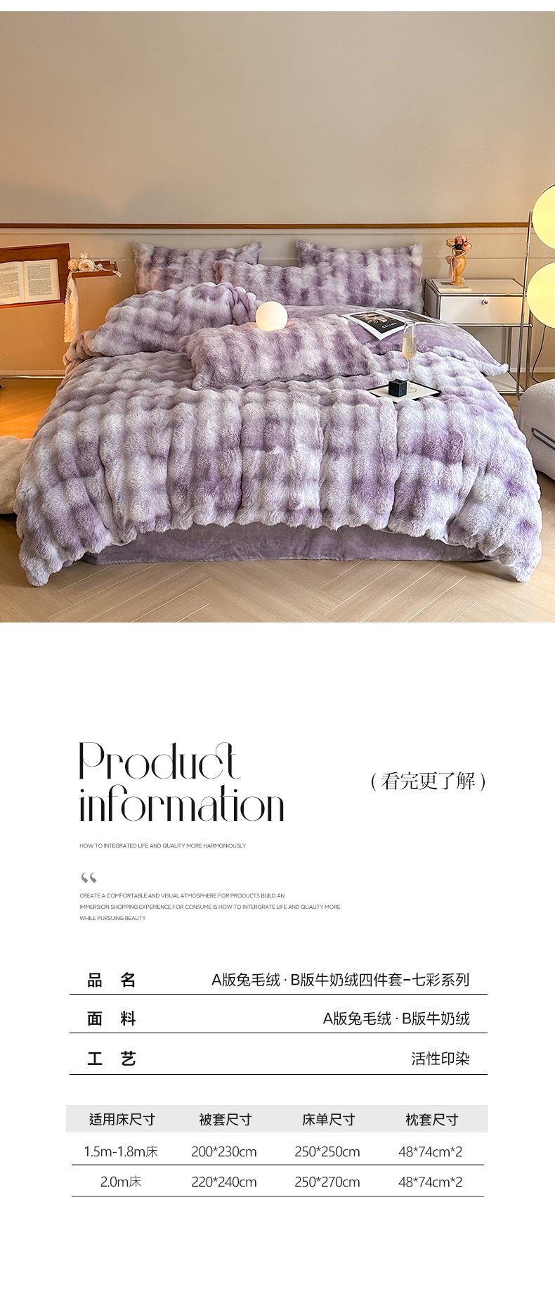 商品名称:畅畅家纺 2025新款纯色七彩兔兔绒兔毛绒牛奶绒四件套 七彩-紫
