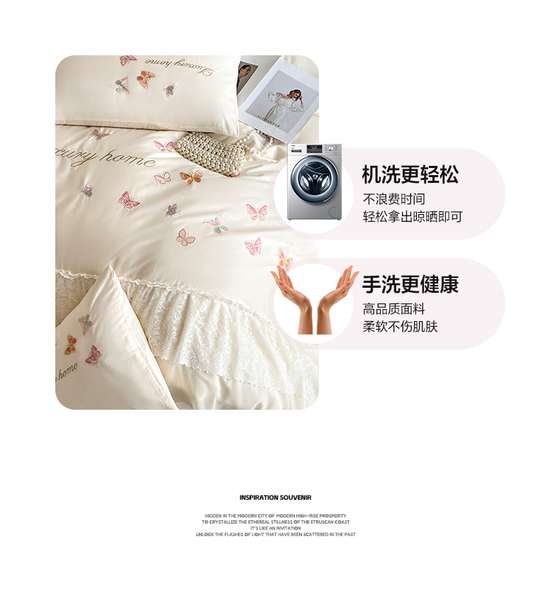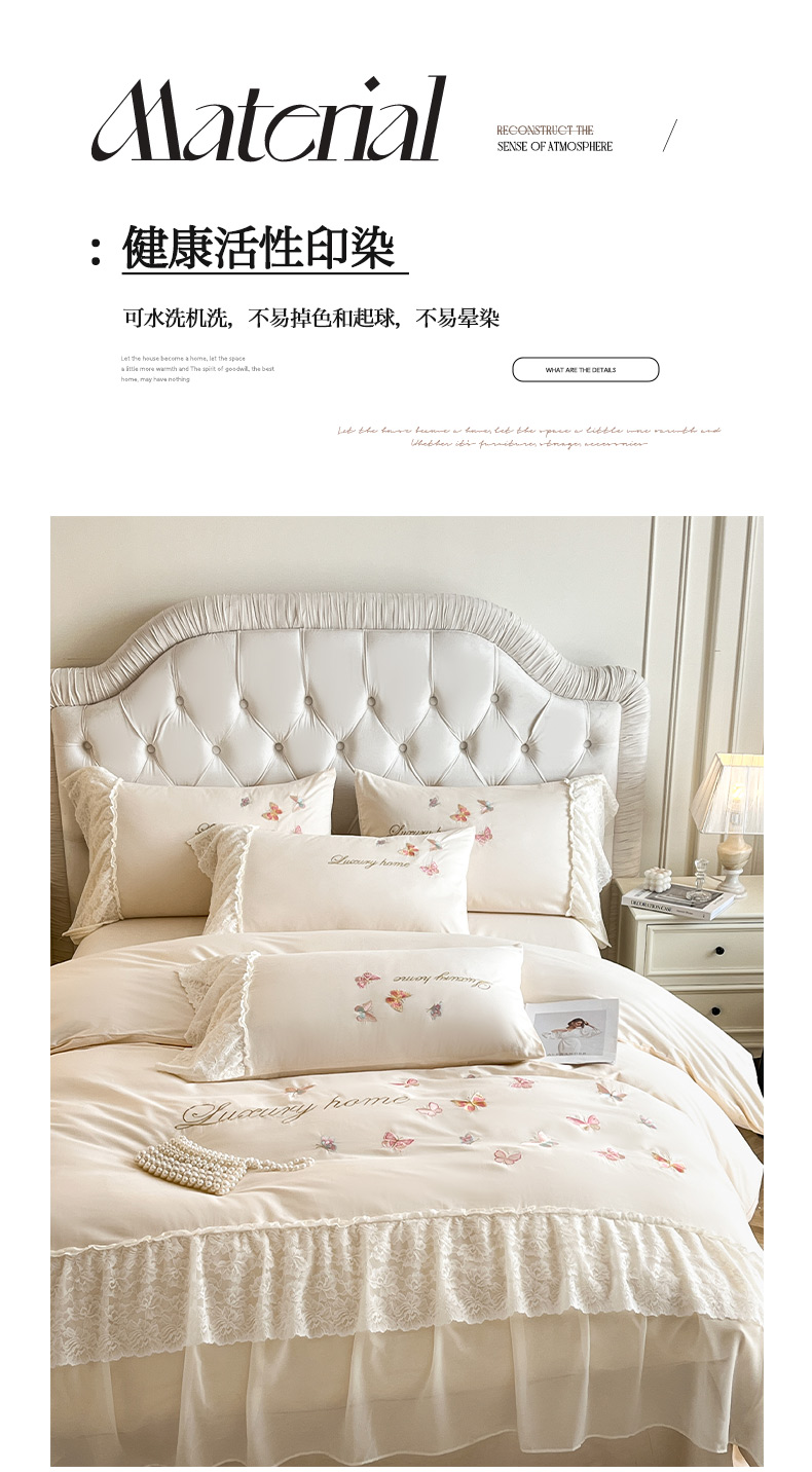 商品名称:(总)索飞特家纺 2025新款全棉蕾丝双层边刺绣四件套(蝶雅)
