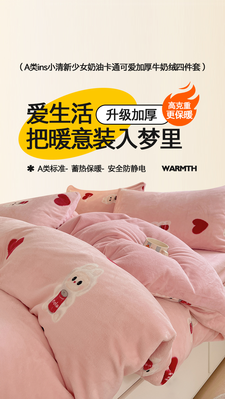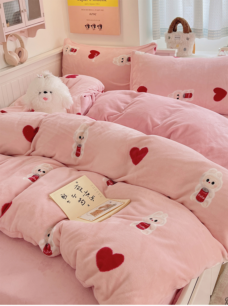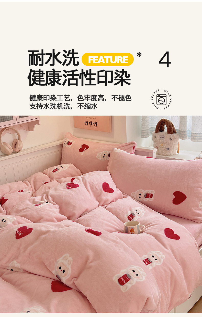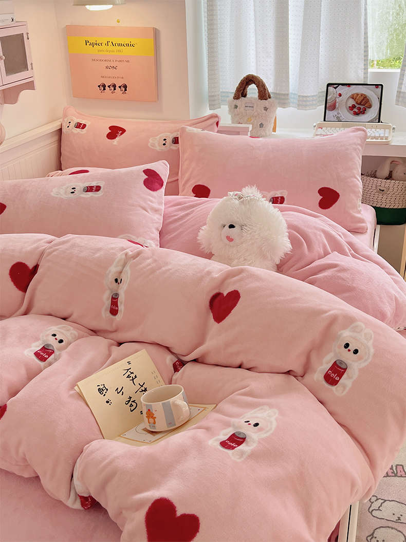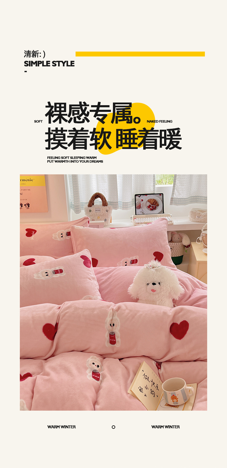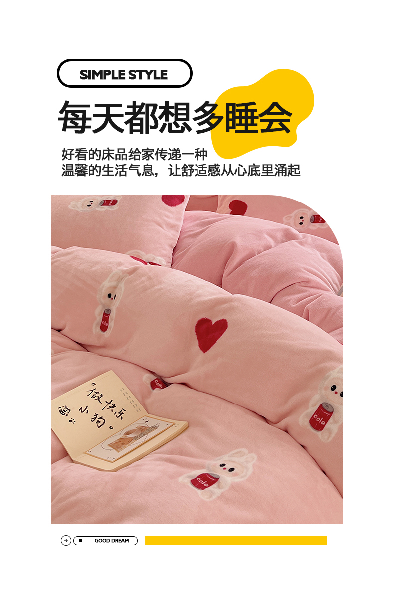 金爱家 2025新款A类ins小清新少女奶油卡通可爱加厚牛奶绒四件套 绒-可乐甜甜