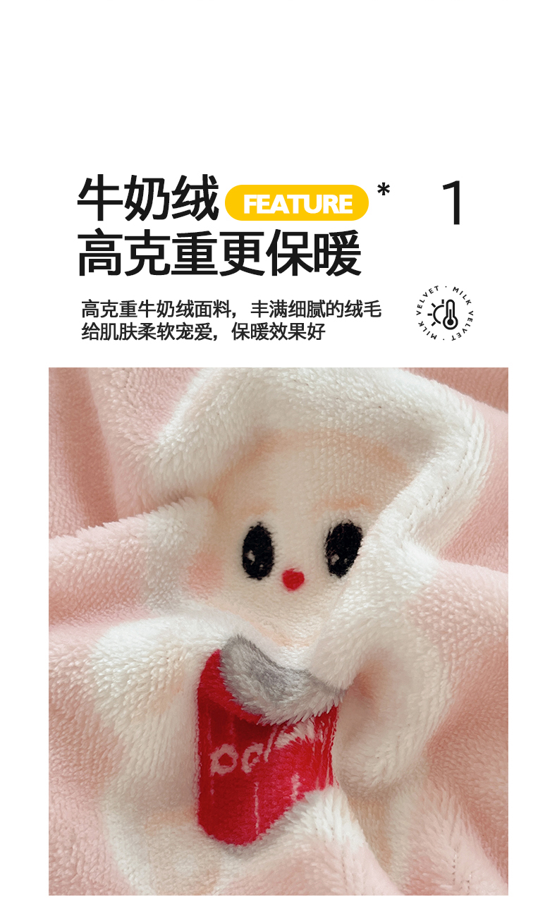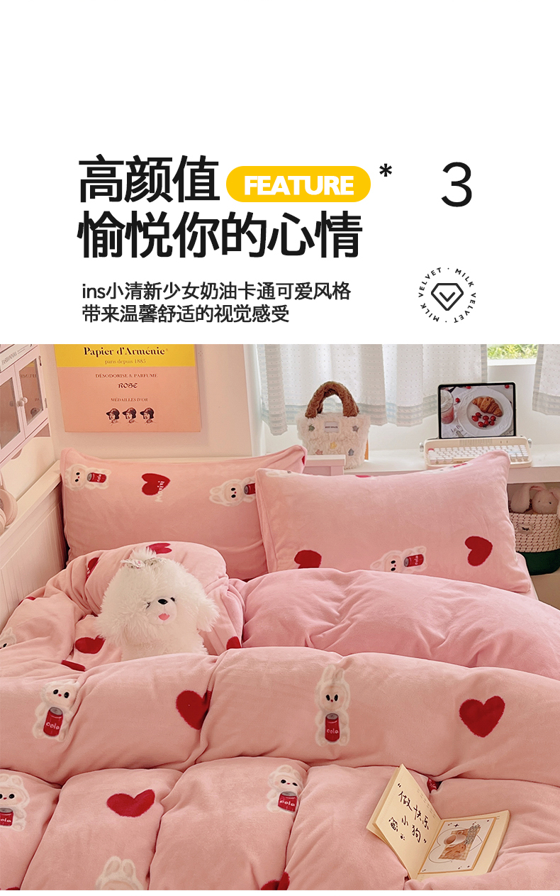 商品名称:金爱家 2025新款A类ins小清新少女奶油卡通可爱加厚牛奶绒四件套 绒-可乐甜甜