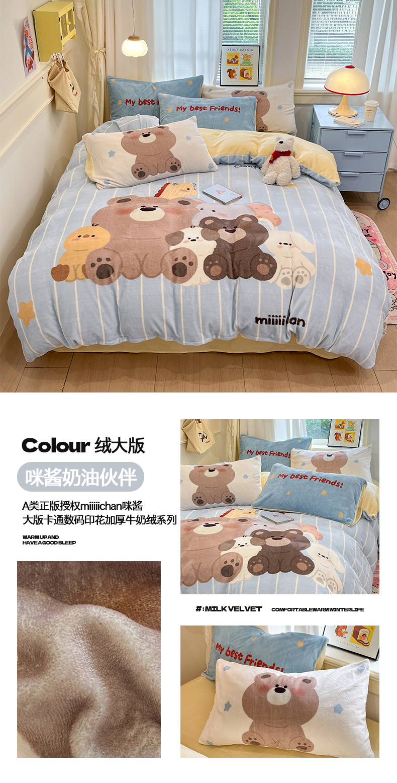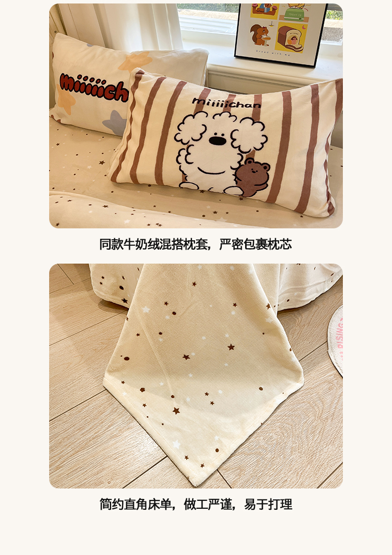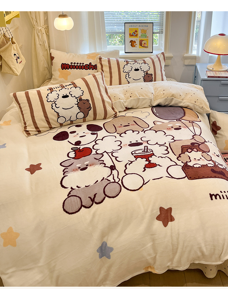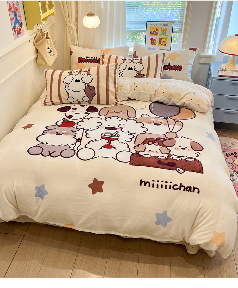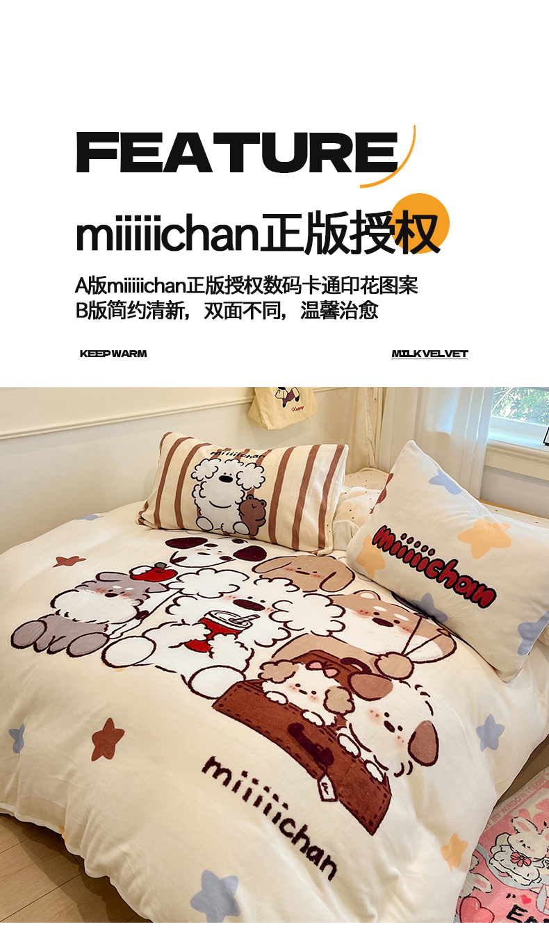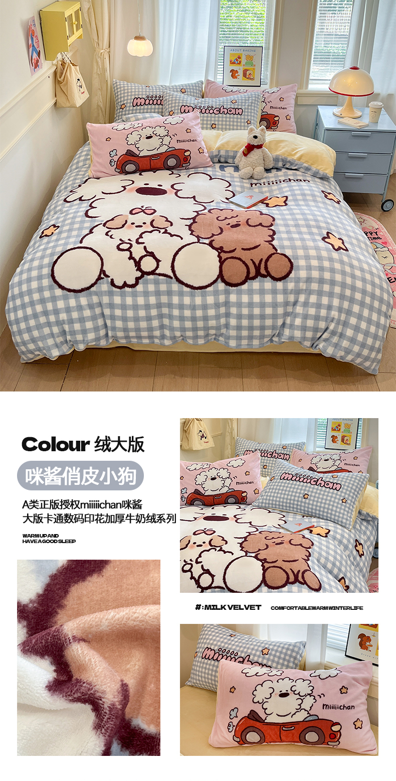 当前位置: 91家纺网 > 商品网购 > 床品套件 > 四件套 > 牛奶绒四件套 > 金爱家 2025新品A类正版授权miiiiichan咪酱大版卡通数码印花加厚牛奶绒系列四件套 绒大版-咪酱星愿小狗