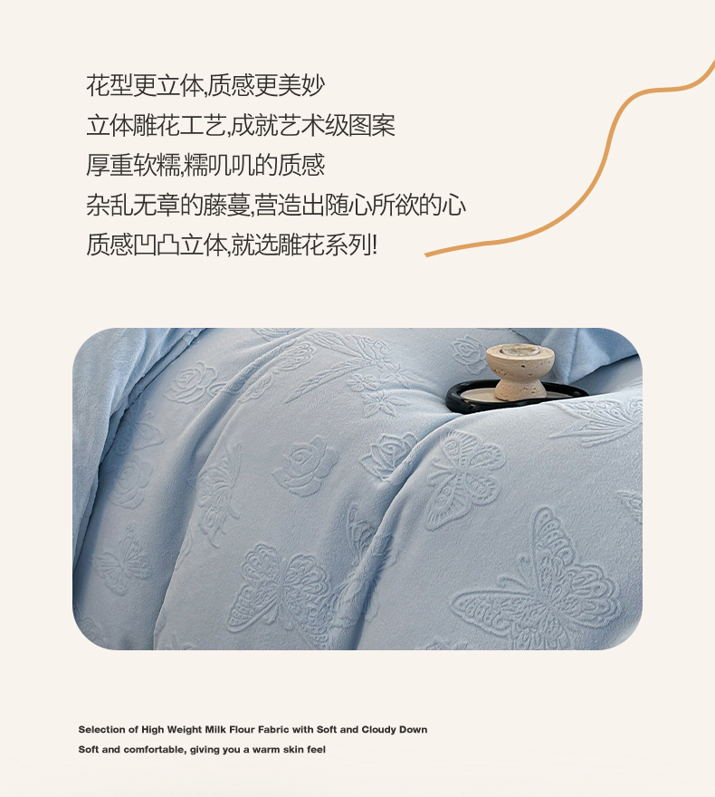(总)绘萱家居 2025新款高克重雕花雕印纯色牛奶绒四件套双拼法莱绒珊瑚绒,蝴蝶纷飞-白卡其,蝴蝶纷飞-粉,蝴蝶纷飞-灰,蝴蝶纷飞-咖,蝴蝶纷飞-绿,甜蜜结-白卡其,甜蜜结-粉,甜蜜结-咖,甜蜜结-蓝,甜蜜结-紫,小雏菊,爱意浓-粉,爱意浓-蓝,芭蕉叶-灰绿,芭蕉叶-奶白咖,芭蕉叶-奶咖,芭蕉叶-浅兰,雕印蝴蝶-浅粉,雕印蝴蝶-浅兰,雕印郁金香-粉,雕印郁金香-紫,蝴蝶公主,花开-淡紫粉,花开-浅绿,华夫格-奶白橙,华夫格-奶白灰,回字格-灰,回字格-奶白咖,回字格-浅兰,孔雀开屏,麦穗-绿,麦穗-奶白咖,曼塔玫瑰-粉豆,曼塔玫瑰-绿,山茶庄园-奶白粉,山茶庄园-奶白咖,手捧花-奶白咖,手捧花-浅兰,叶景-咖,叶景-蓝,一生挚爱-粉,一生挚爱-卡其,知意-粉,知意-绿