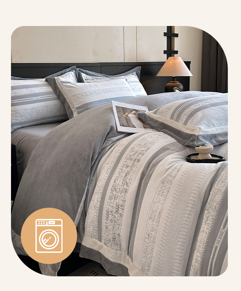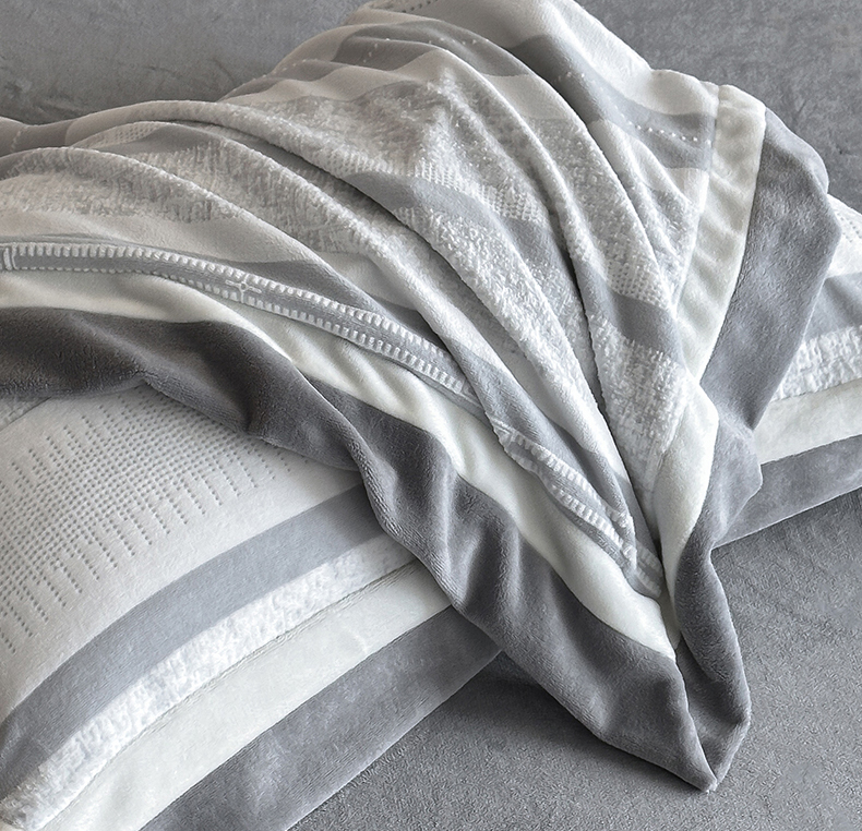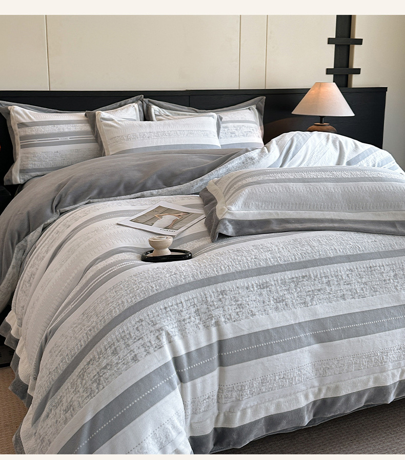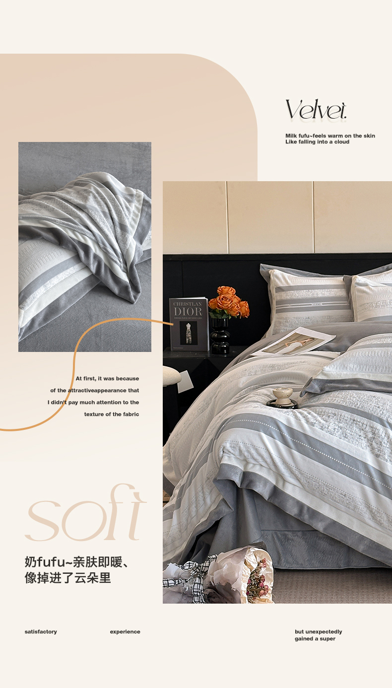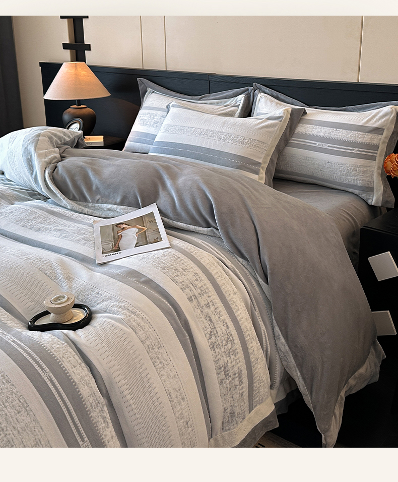 绘萱家居 2025新品热款高密消光双拼边雕花牛奶绒四件套拼角纯色 维多利亚-灰