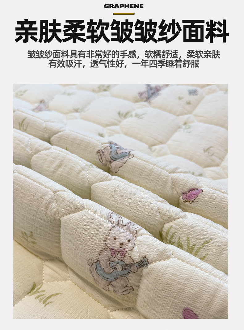 (总)布卢姆床垫 2025新款A类皱皱纱印花夹棉床笠,蝴蝶可颂,花园小兔,极简主义,焦糖小狗,可爱小腊肠,快乐家族,萌萌兔,泡芙小狗,森林舞会,甜心草莓,仙女多巴胺