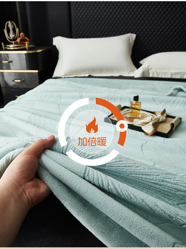 商品名称:凯轩毛毯网销专供 2025新款单层雕花毯毛毯婚庆毯保暖毯子 银杏叶 浅绿