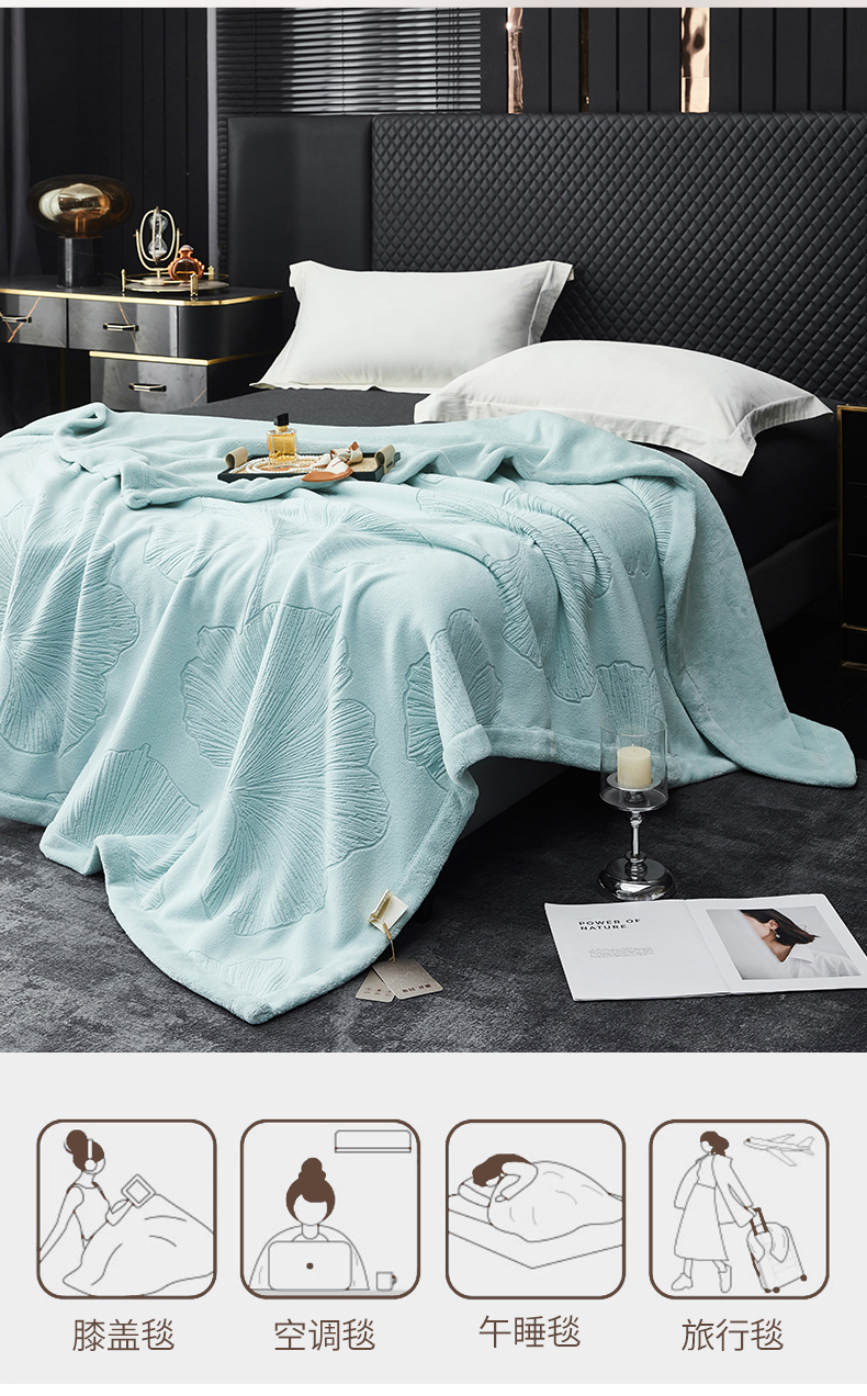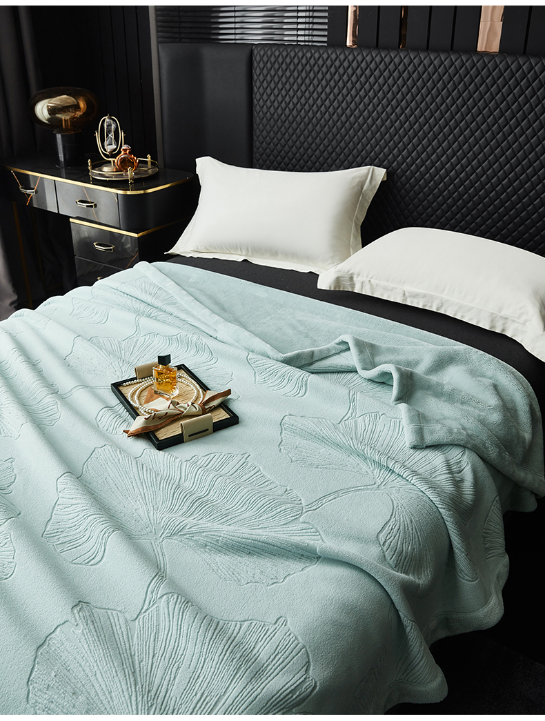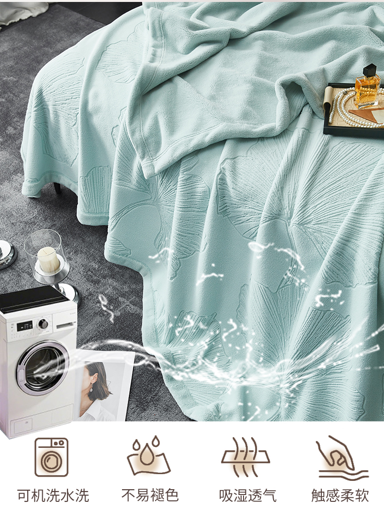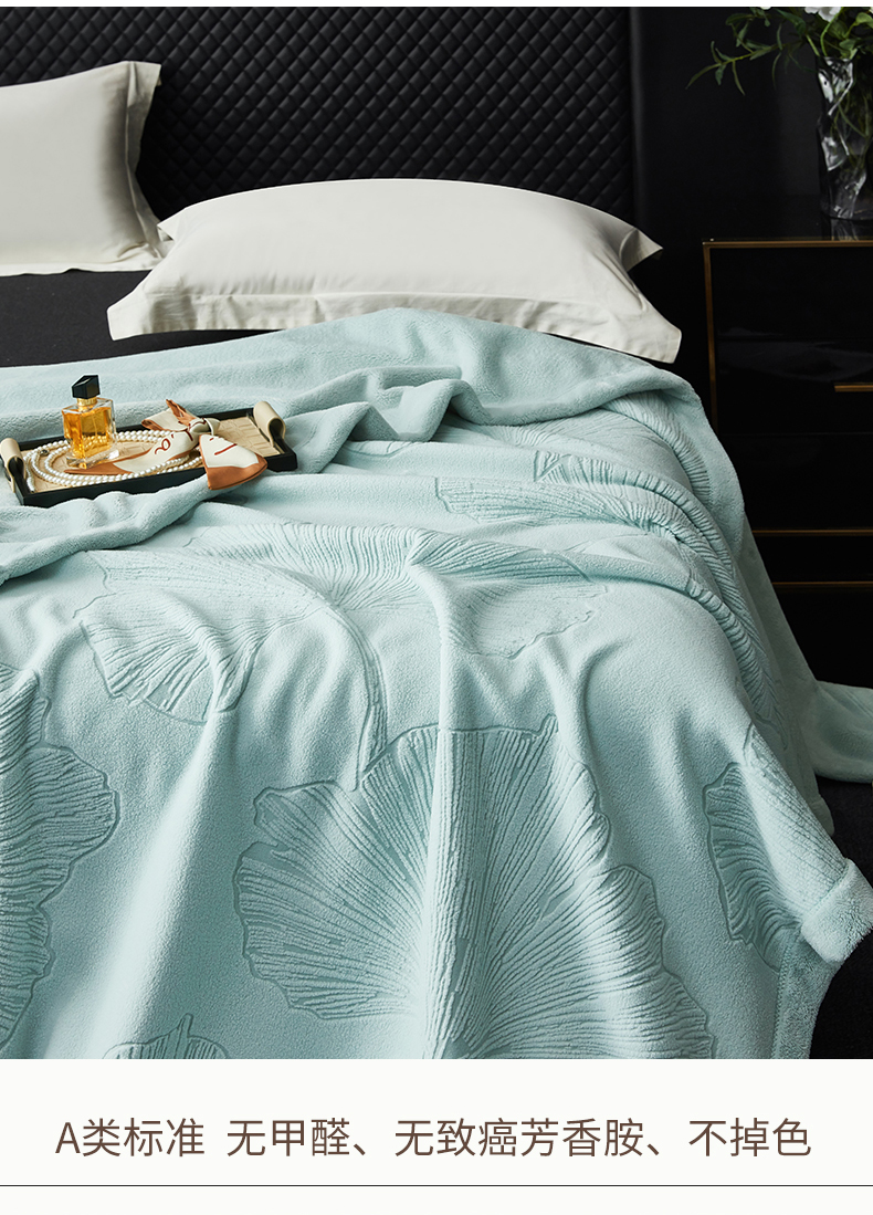 凯轩毛毯网销专供 2025新款单层雕花毯毛毯婚庆毯保暖毯子 银杏叶 浅绿