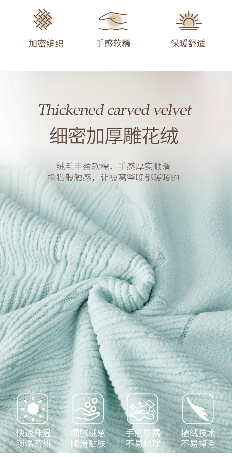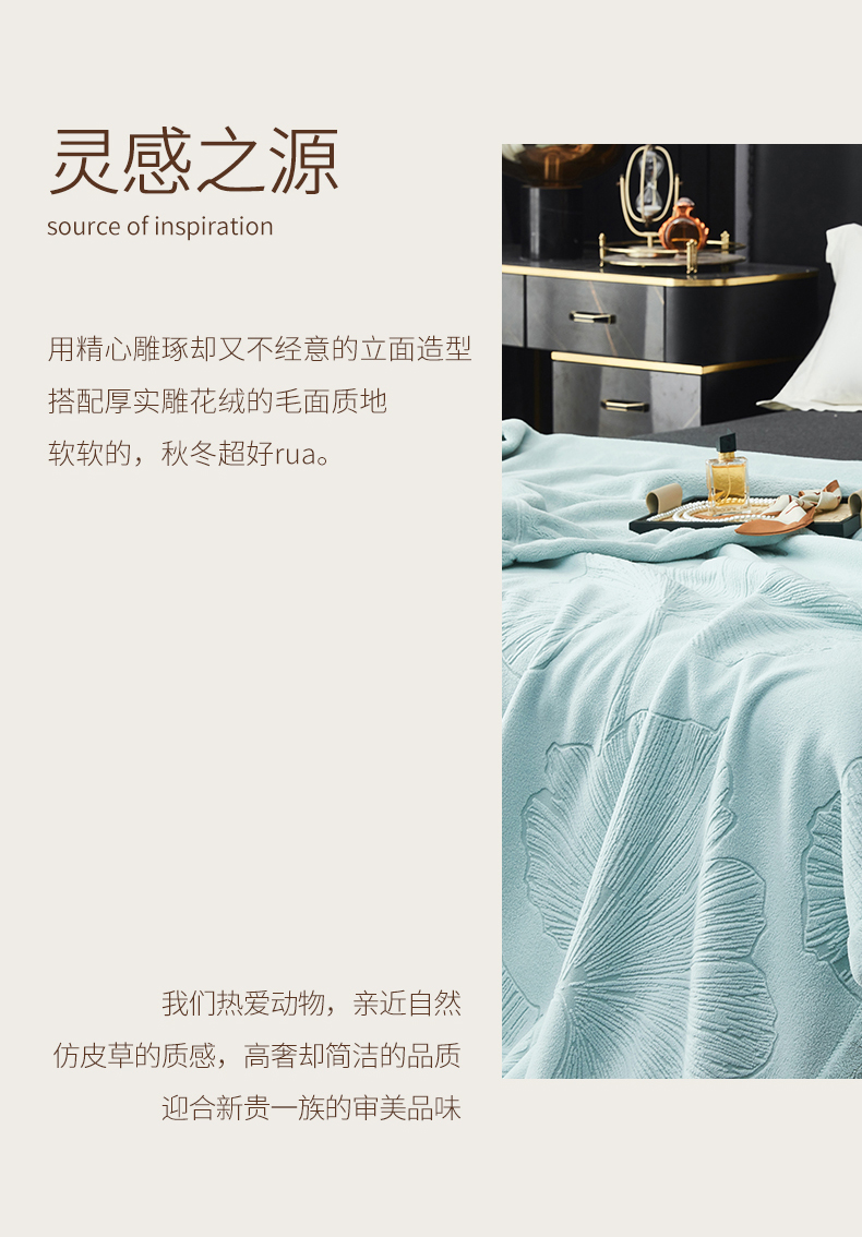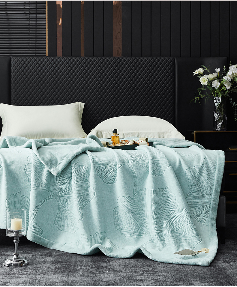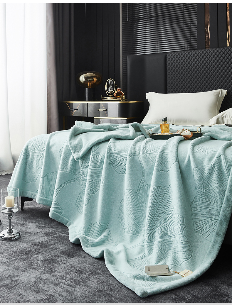 凯轩毛毯网销专供 2025新款单层雕花毯毛毯婚庆毯保暖毯子 银杏叶 浅绿