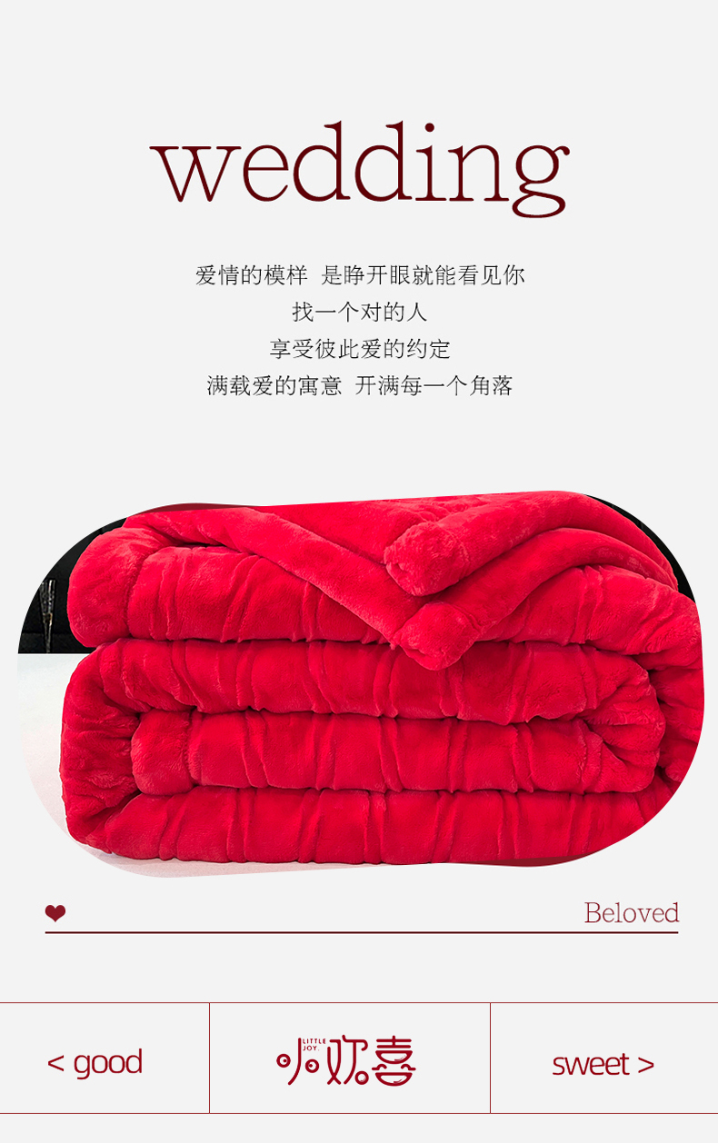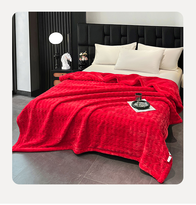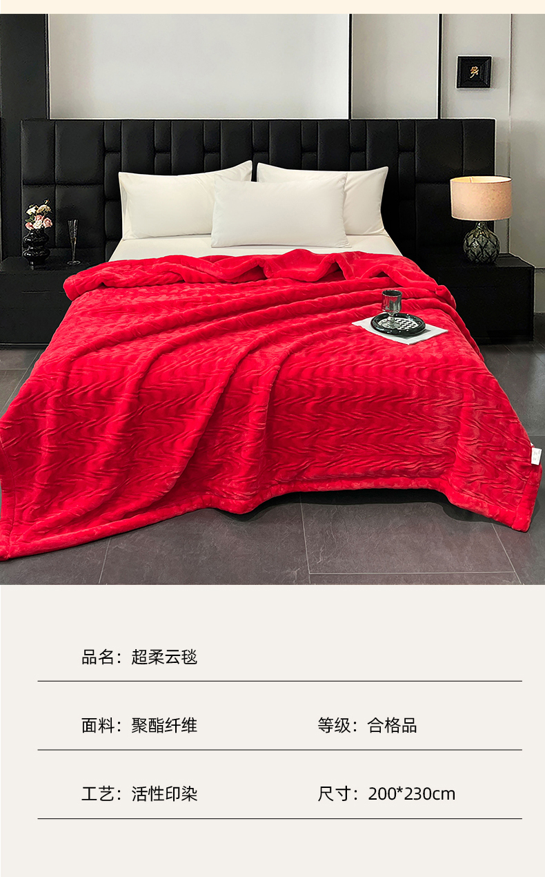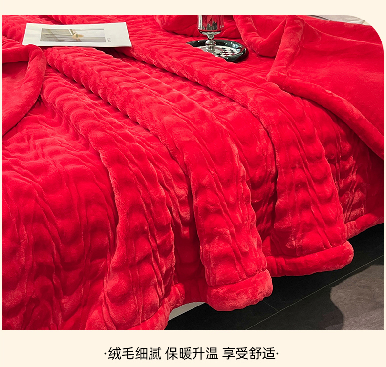 商品名称:凯轩毛毯网销专供 2025新款水波纹精品婚庆云毯毛毯 水波纹-胭脂红