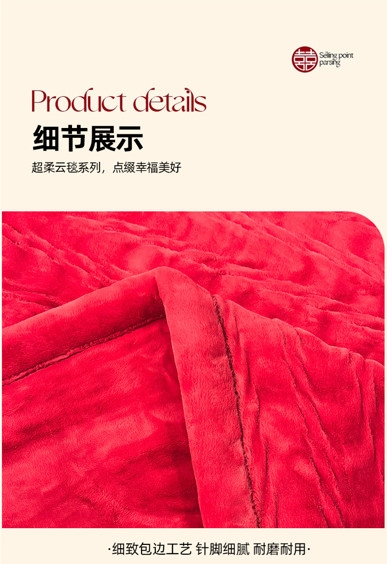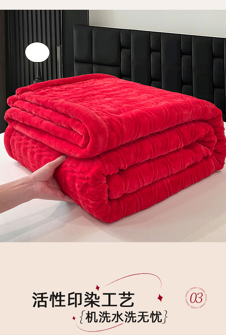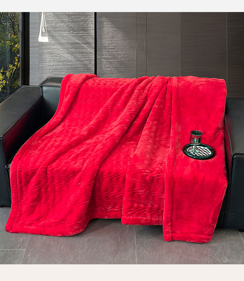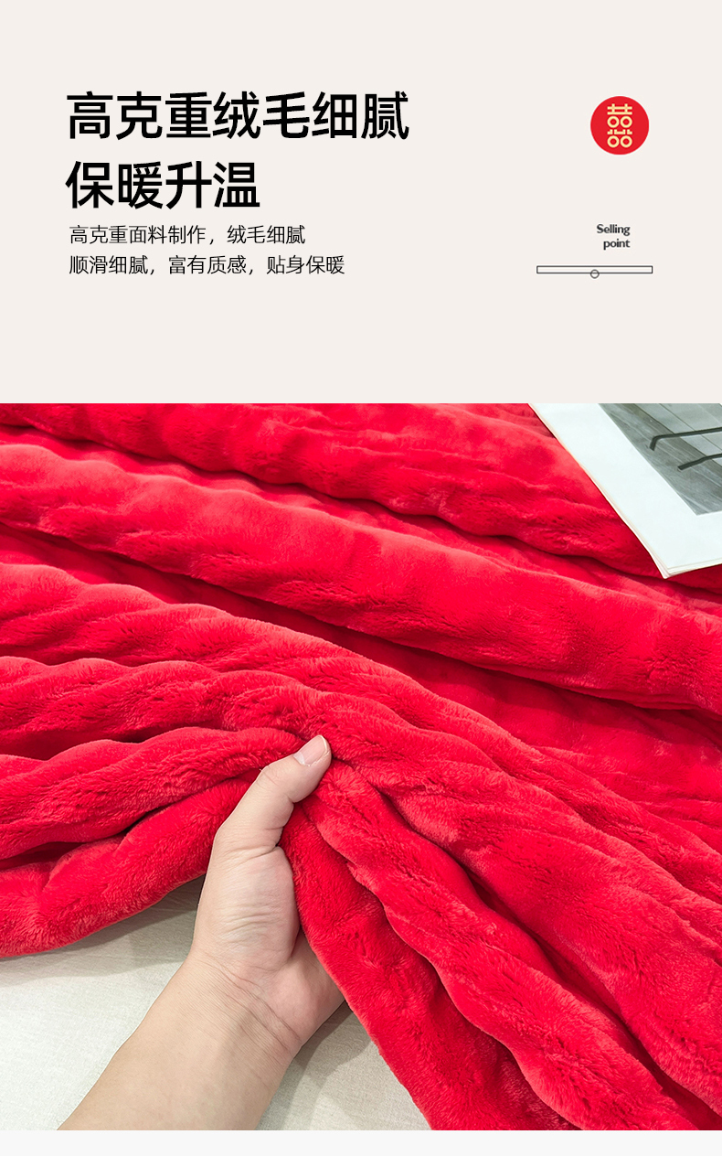 商品名称:凯轩毛毯网销专供 2025新款水波纹精品婚庆云毯毛毯 水波纹-胭脂红