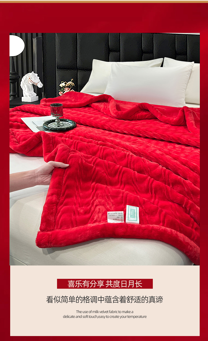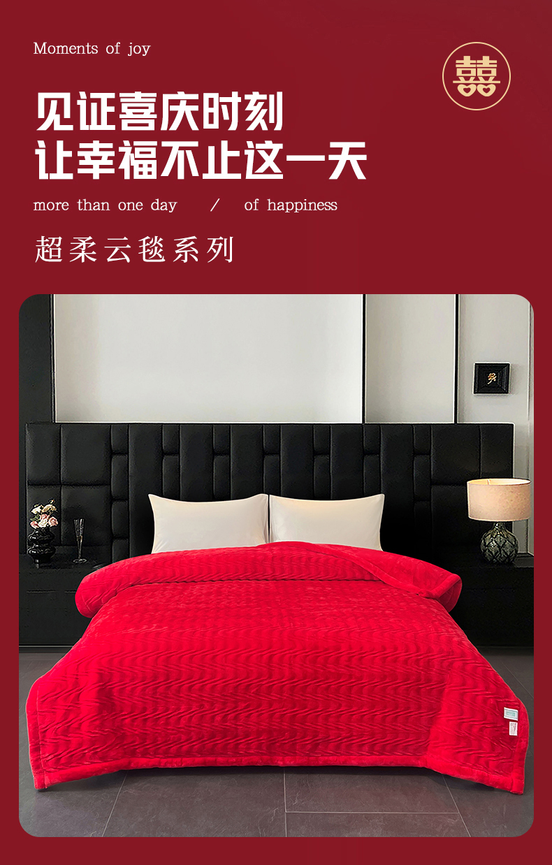 凯轩毛毯网销专供 2025新款水波纹精品婚庆云毯毛毯 水波纹-胭脂红