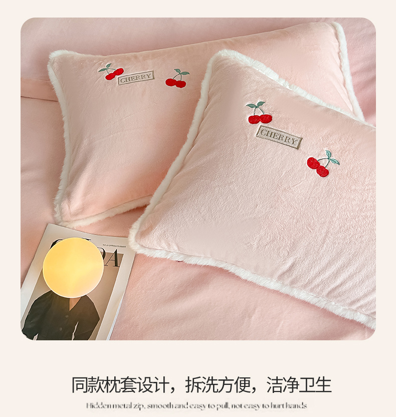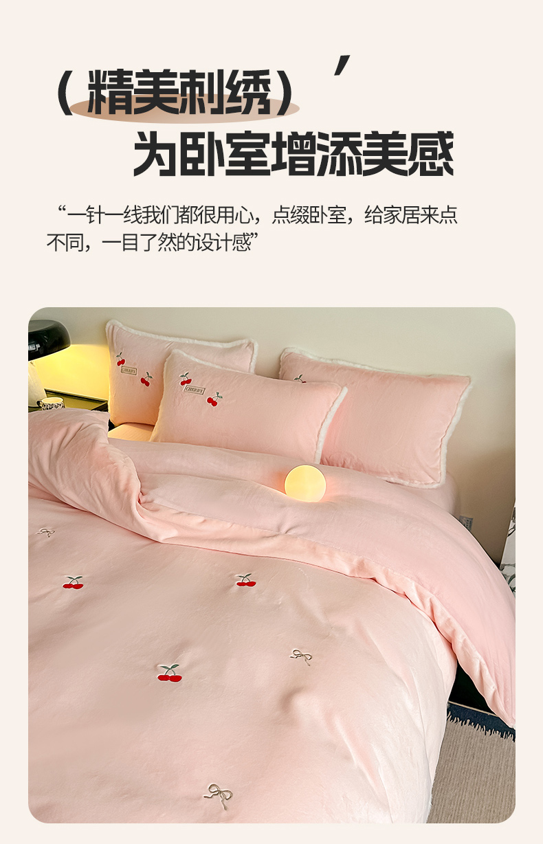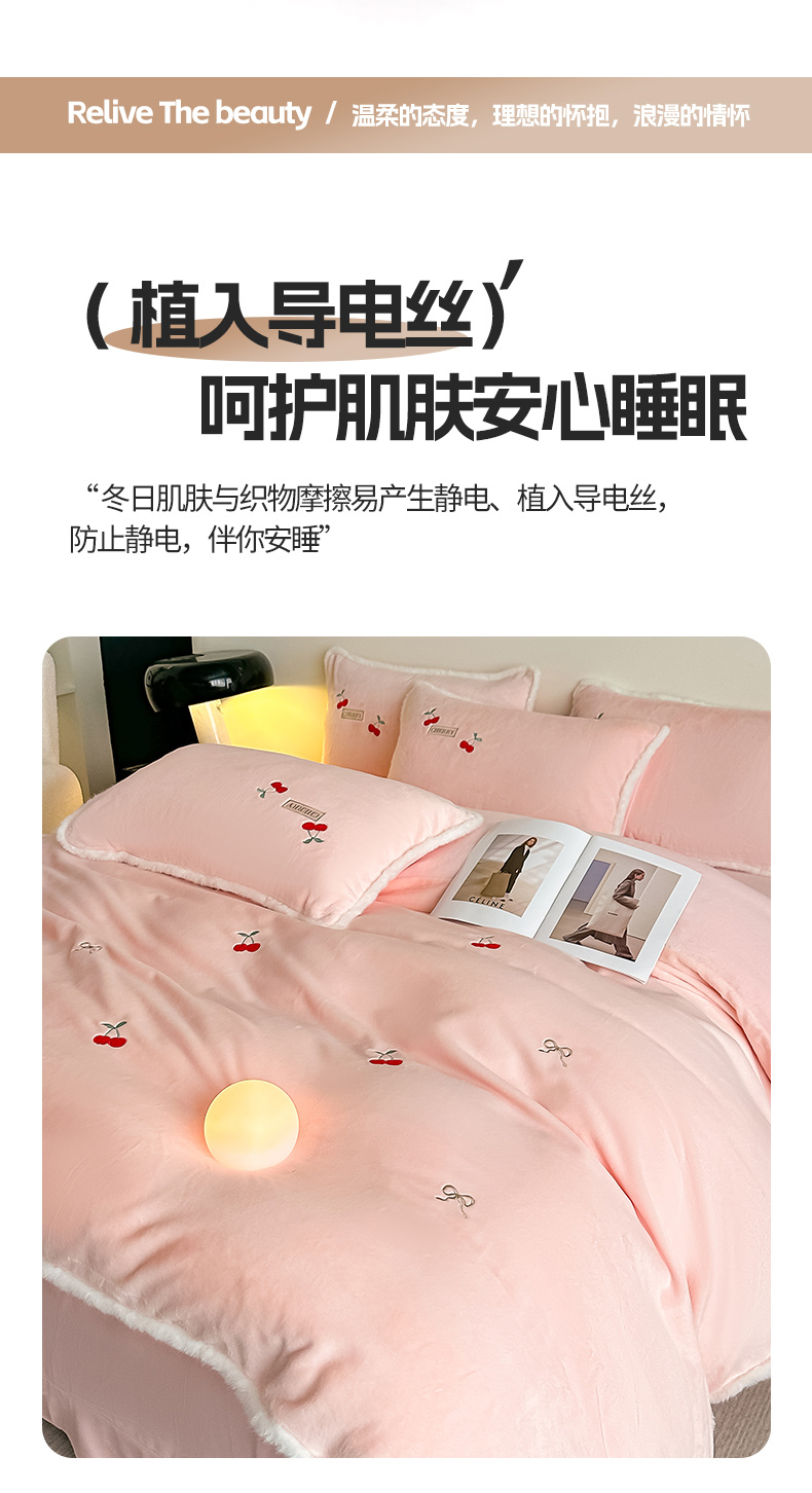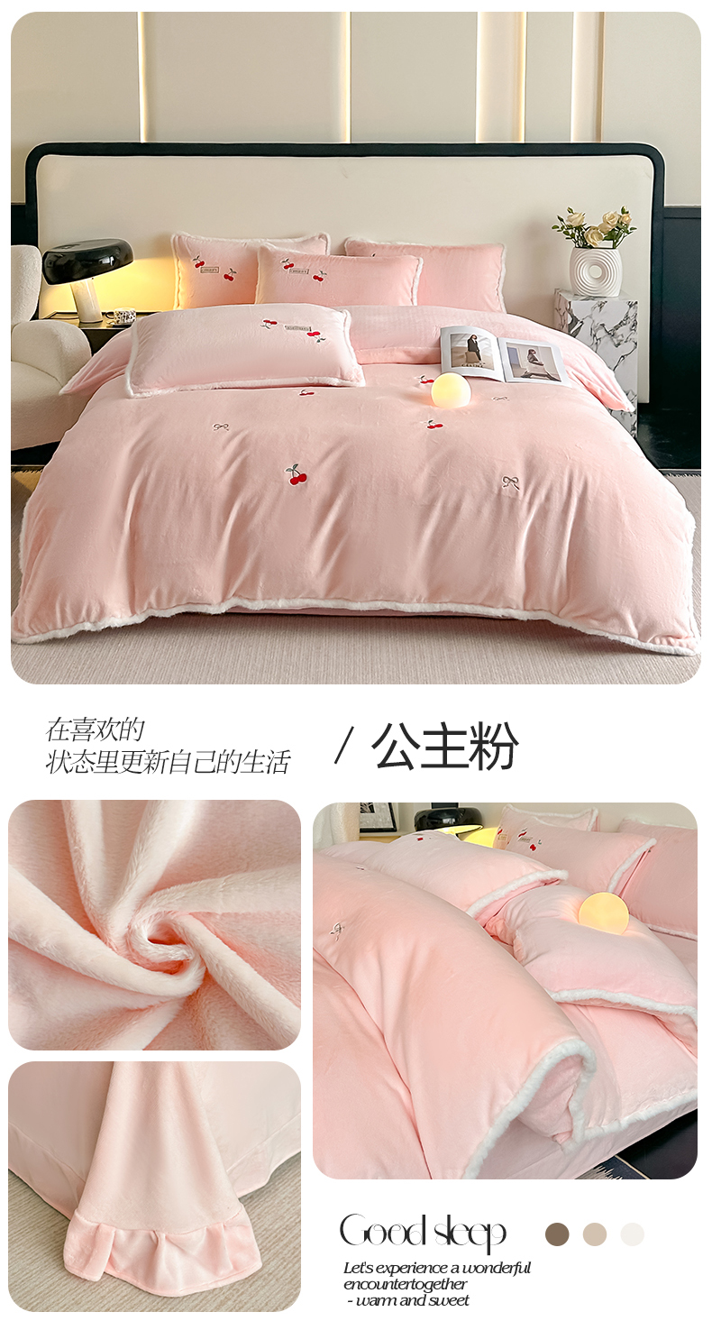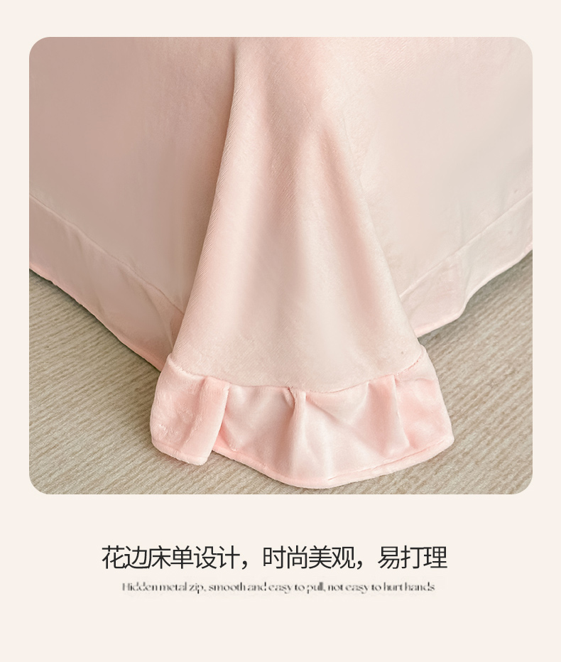 商品名称:梓之赫 2025新款A类高密度雪貂绒四件套 公主粉