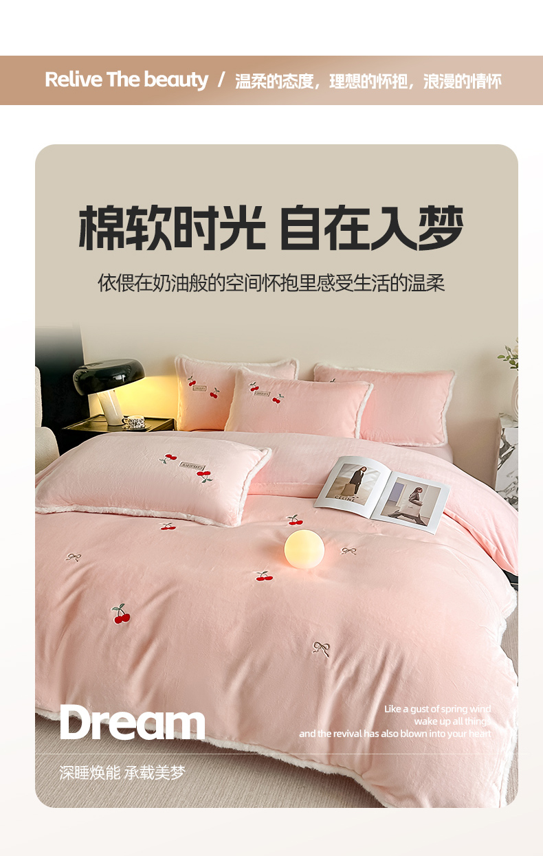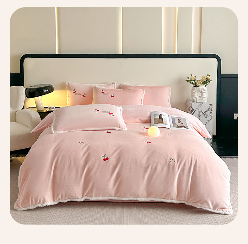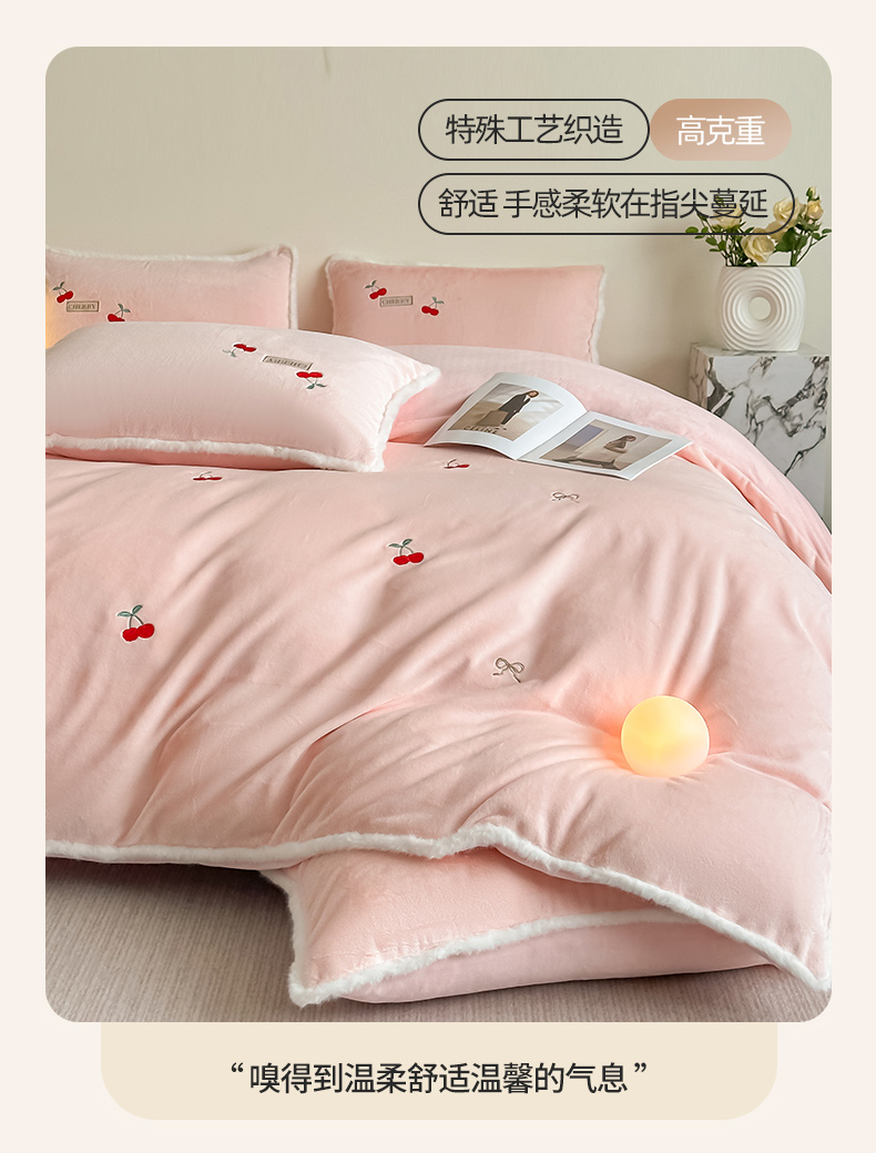 梓之赫 2025新款A类高密度雪貂绒四件套 公主粉