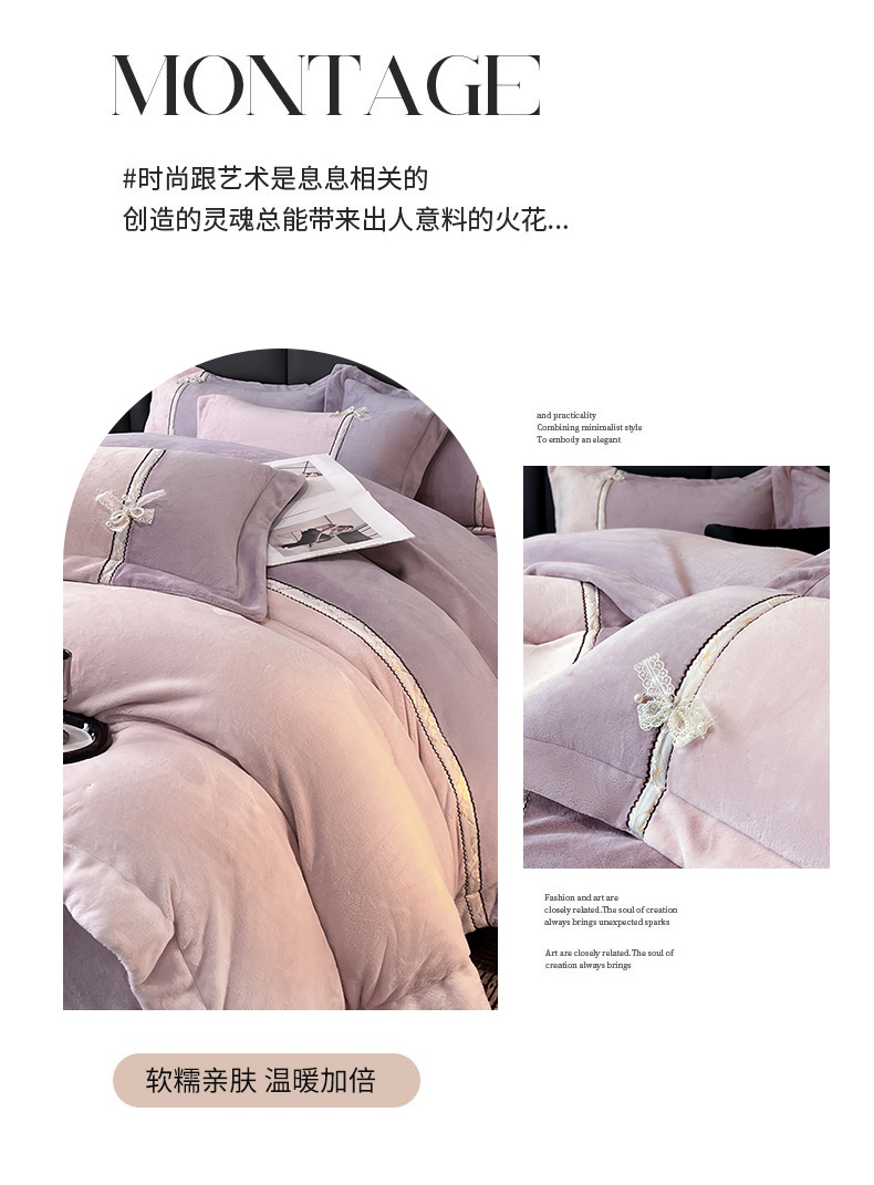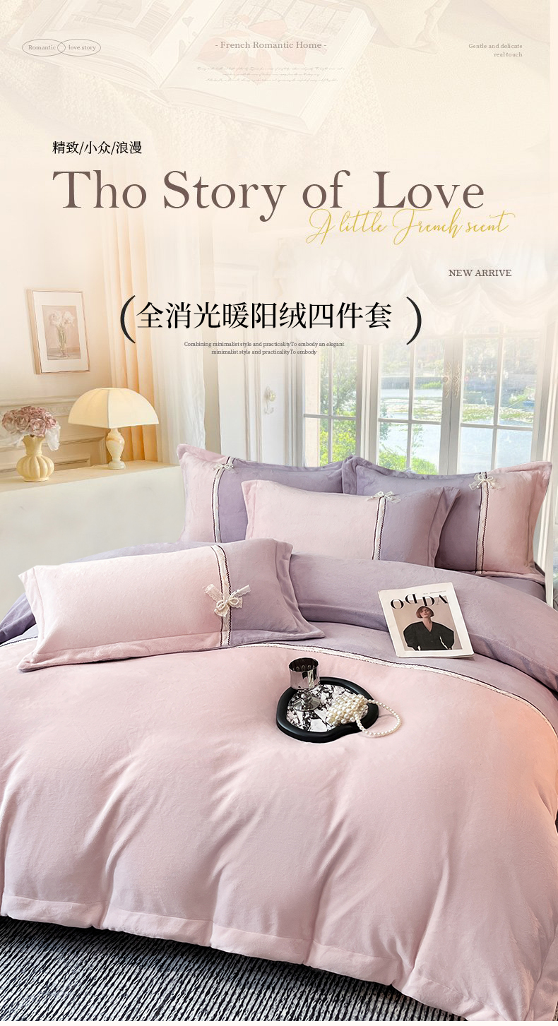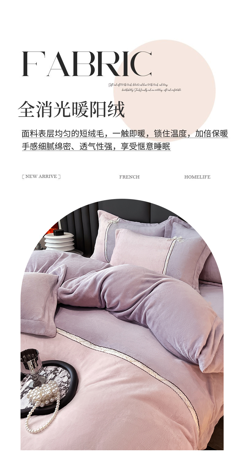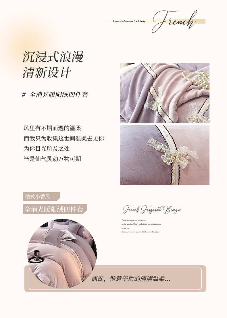 当前位置: 91家纺网 > 商品网购 > 床品套件 > 四件套 > 其它四件套 > 馨梦缘 2025新款全消光暖阳绒四件套 珍爱款-浪漫紫+浅粉