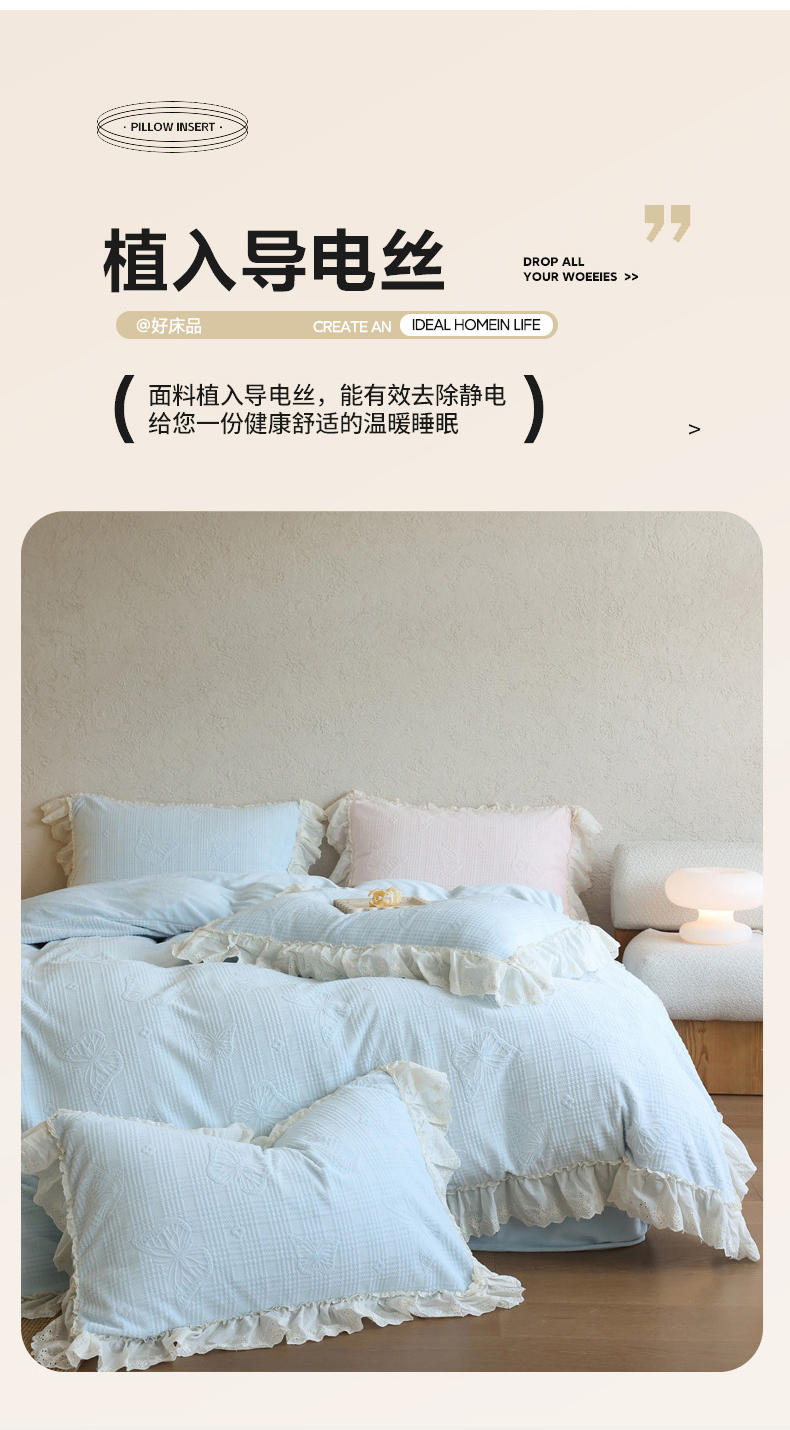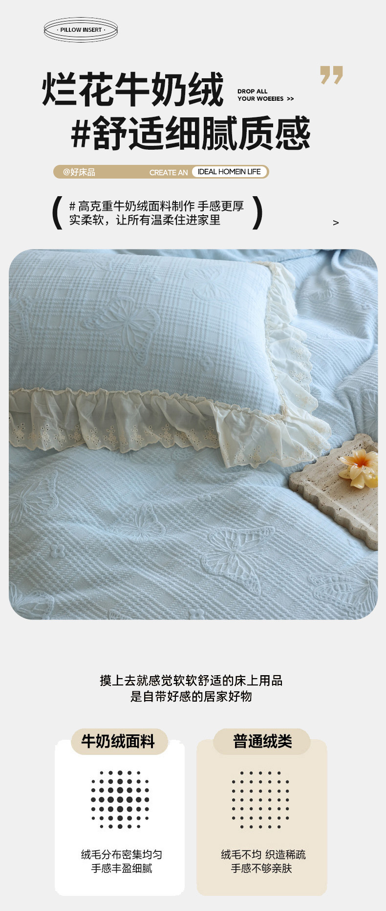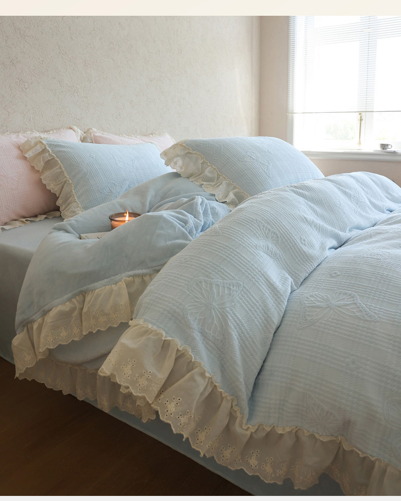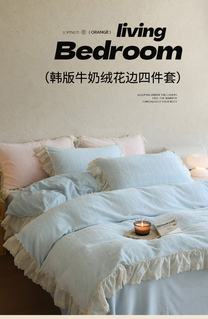 商品名称:万盛家纺 2025新款韩版牛奶绒花边四件套-翩翩蝴蝶 翩翩蝴蝶 蓝色