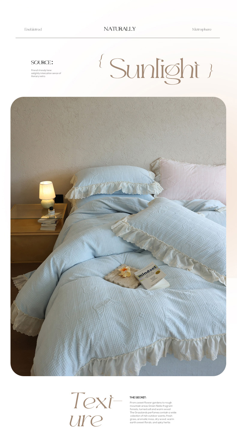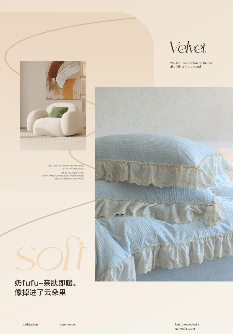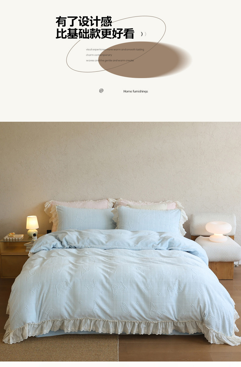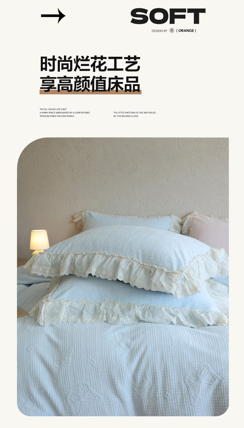商品名称:万盛家纺 2025新款韩版牛奶绒花边四件套-翩翩蝴蝶 翩翩蝴蝶 蓝色
