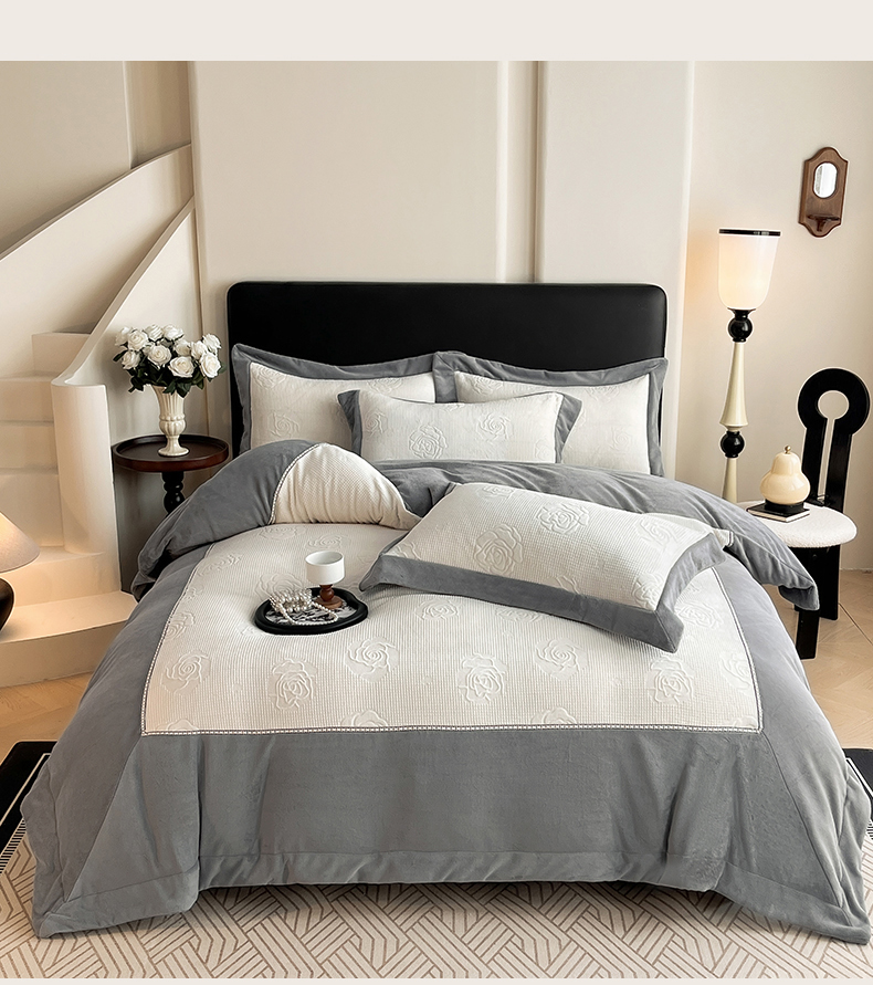 当前位置: 91家纺网 > 商品网购 > 床品套件 > 四件套 > 牛奶绒四件套 > (总)馨梦缘 2025新款高克重雕花牛奶绒四件套纯色双拼四件套