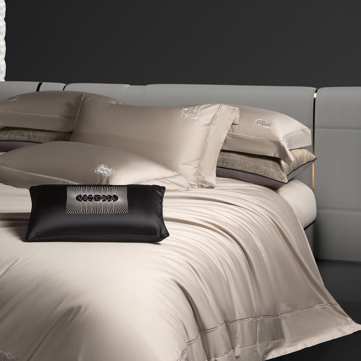 总玖玖爱家纺 纯棉100支贡缎长绒棉刺绣被套三件套四件套加大四件套,白色,高级灰,卡其,蓝灰,绿色,浅桔,深蓝,紫豆沙