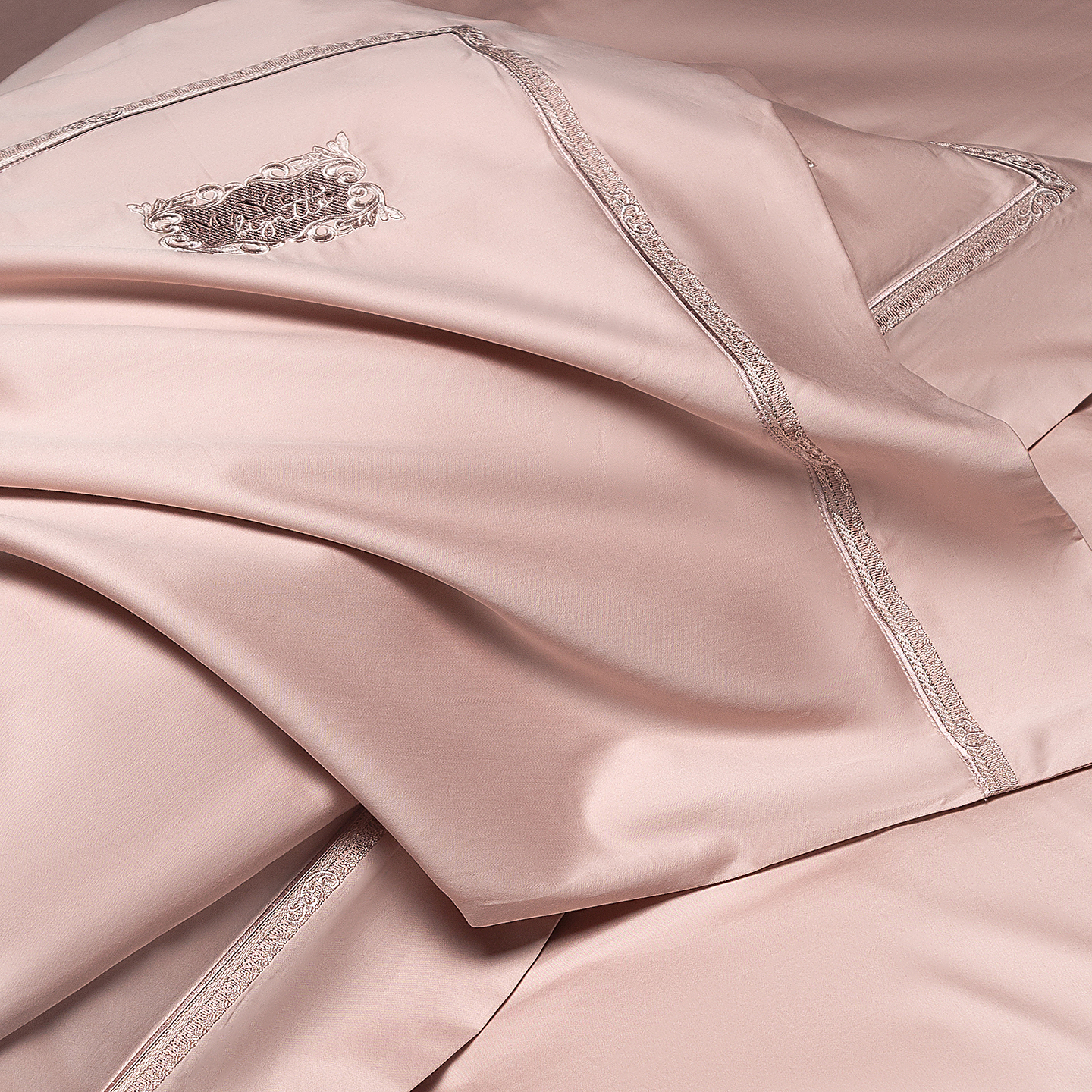 玖玖爱家纺 2025新款180支植物甑棉罗卡芙刺绣系列四件套 雅灰紫