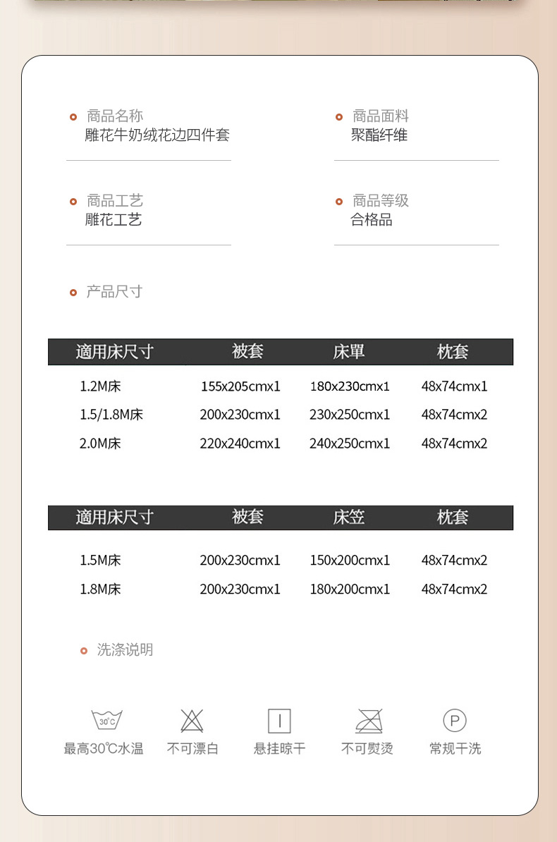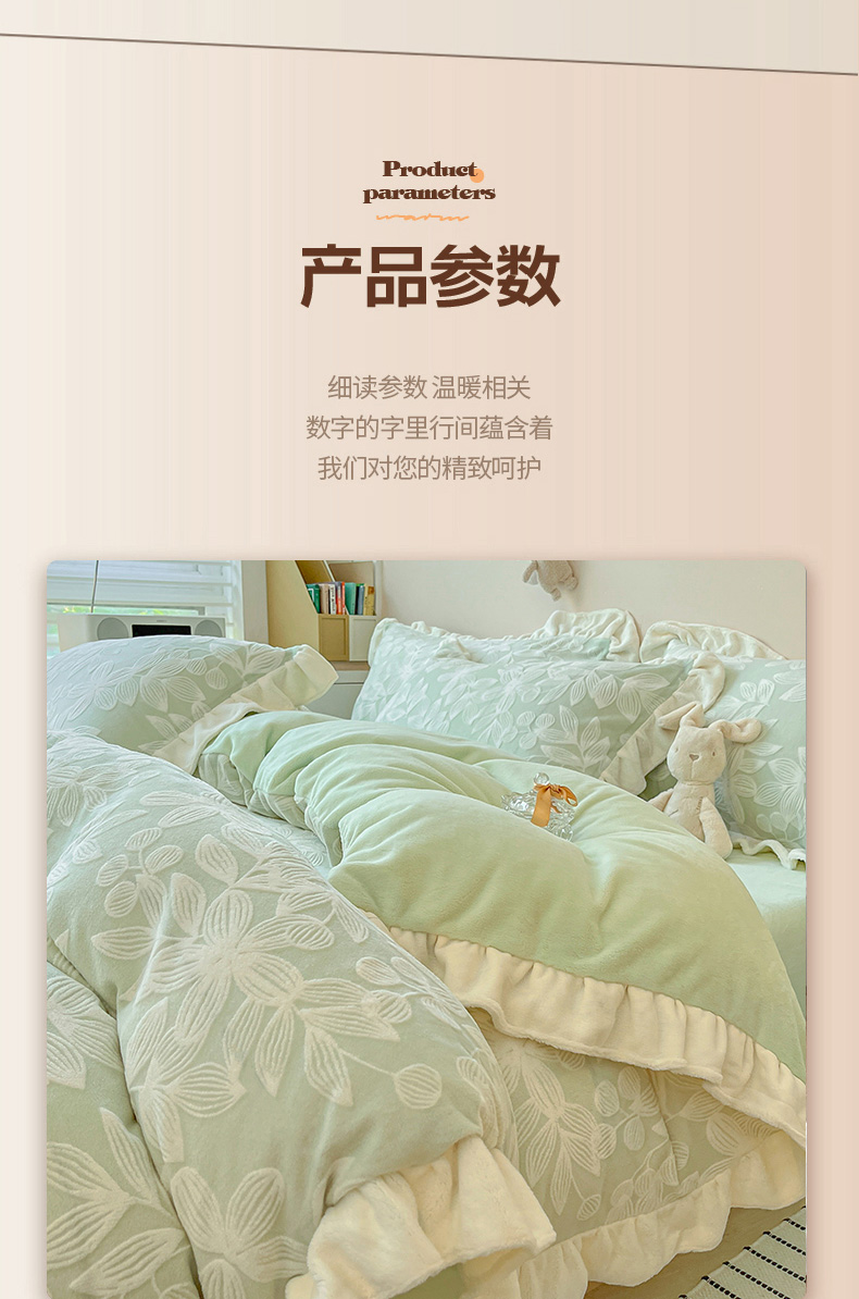 商品名称:(总)琪格格纺织 2025新款全消光小清新花边款雕花牛奶绒四件套