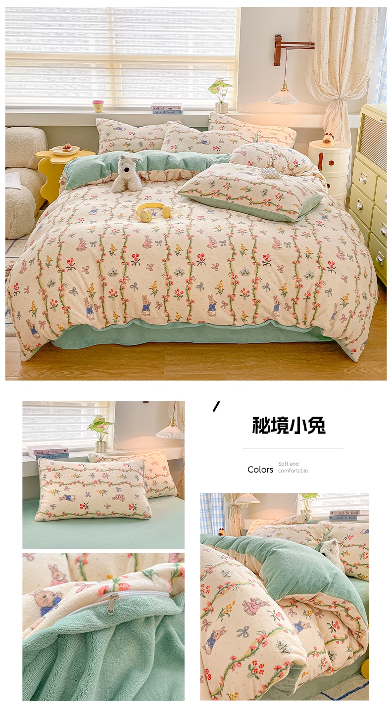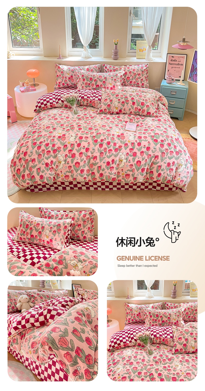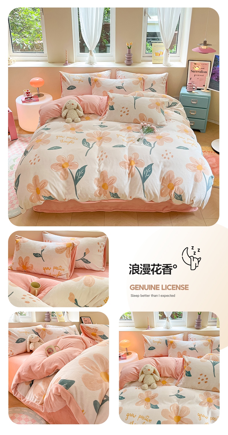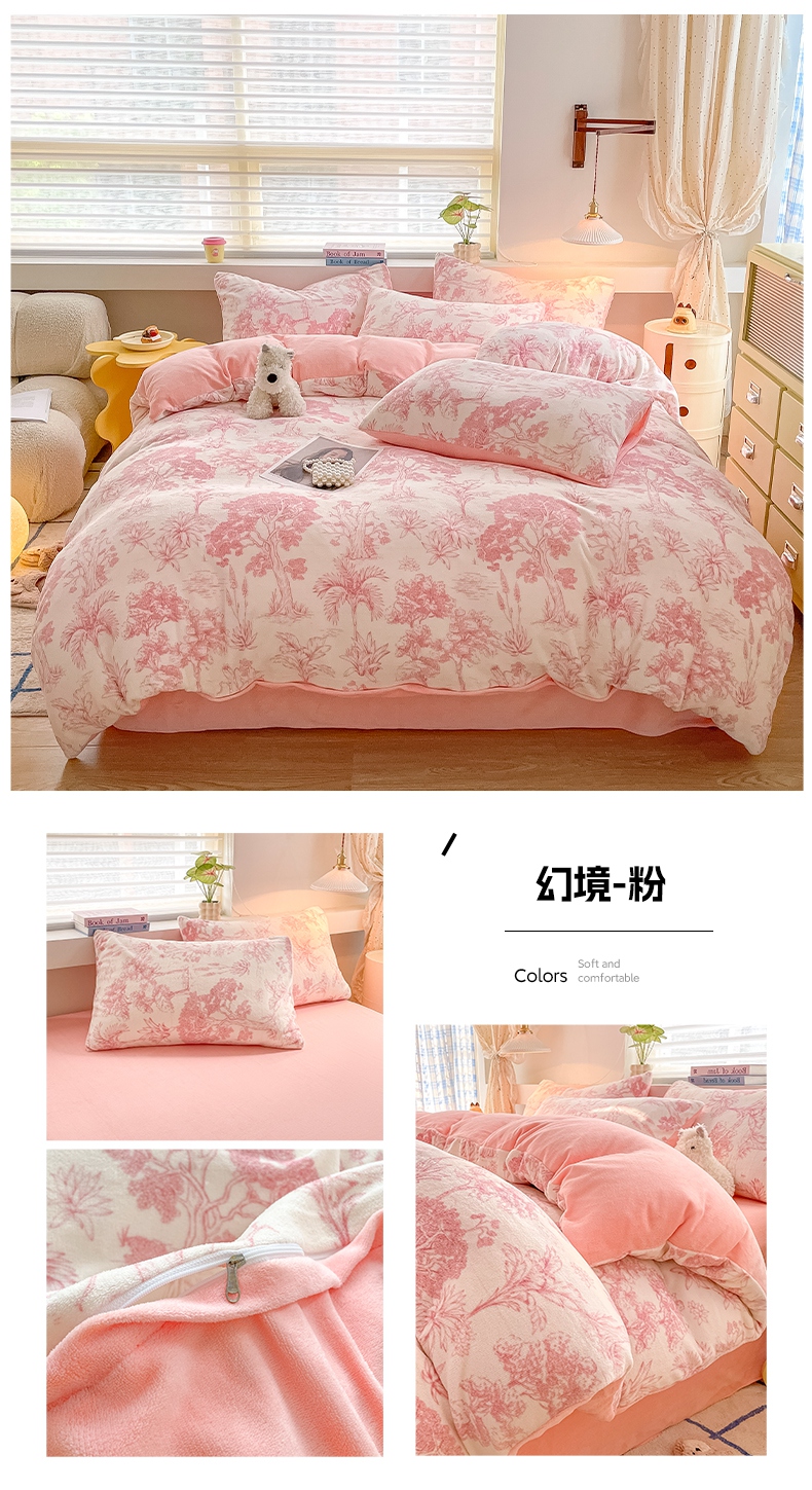 商品名称:雅居纺家纺 2025新款高克重牛奶绒印花单被套 M粉