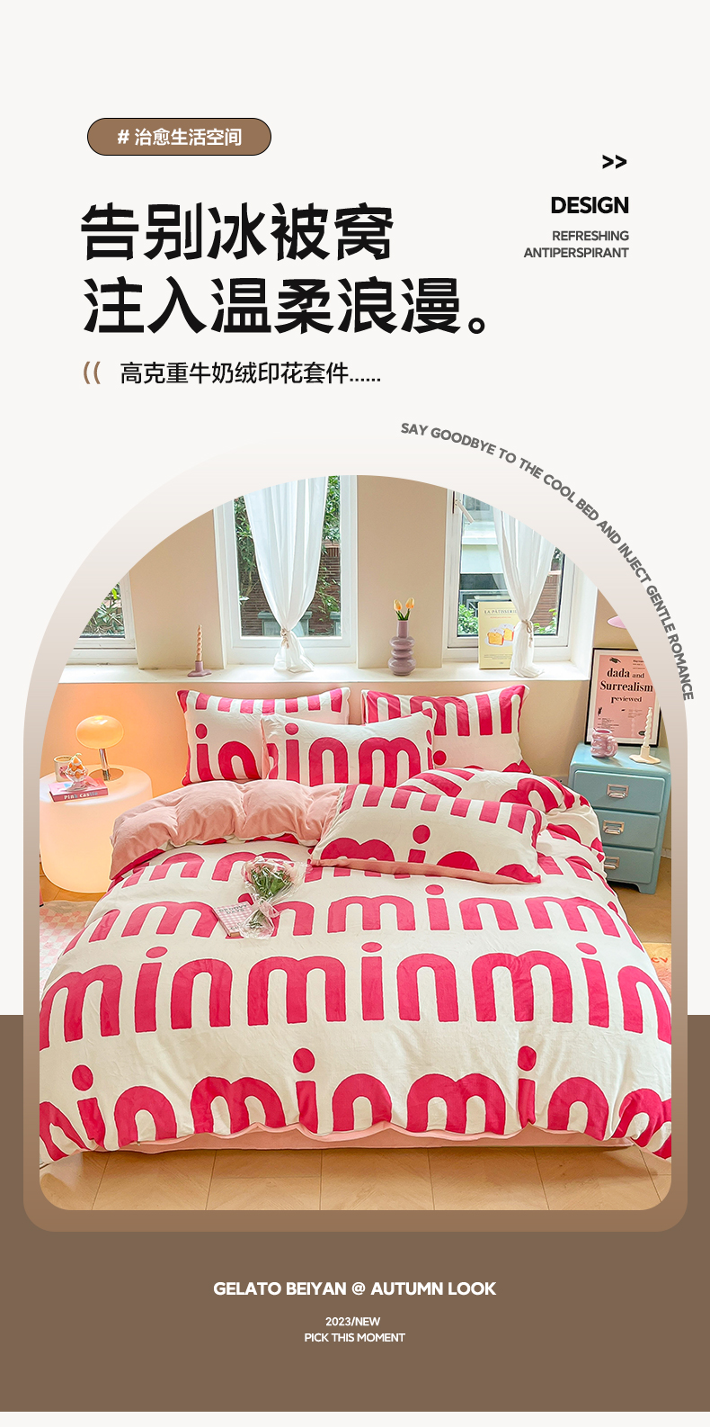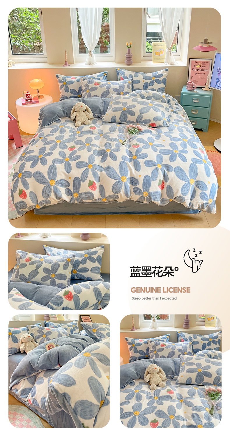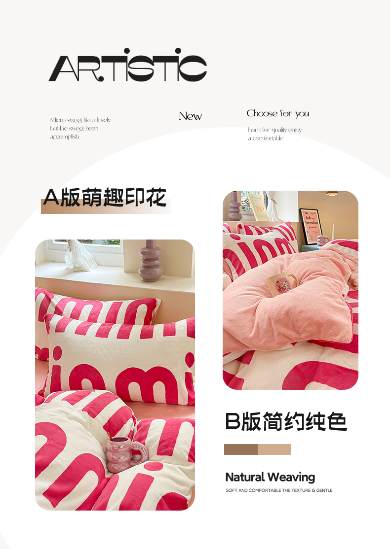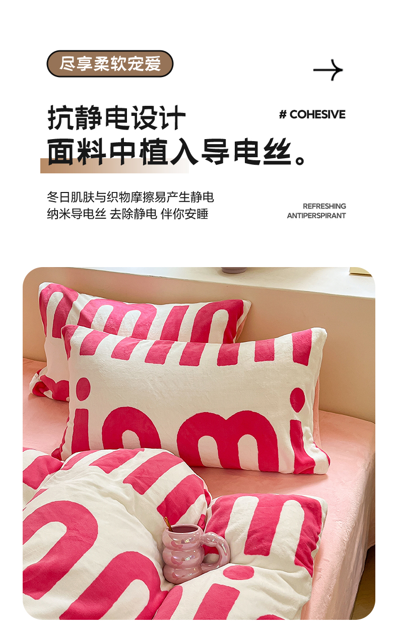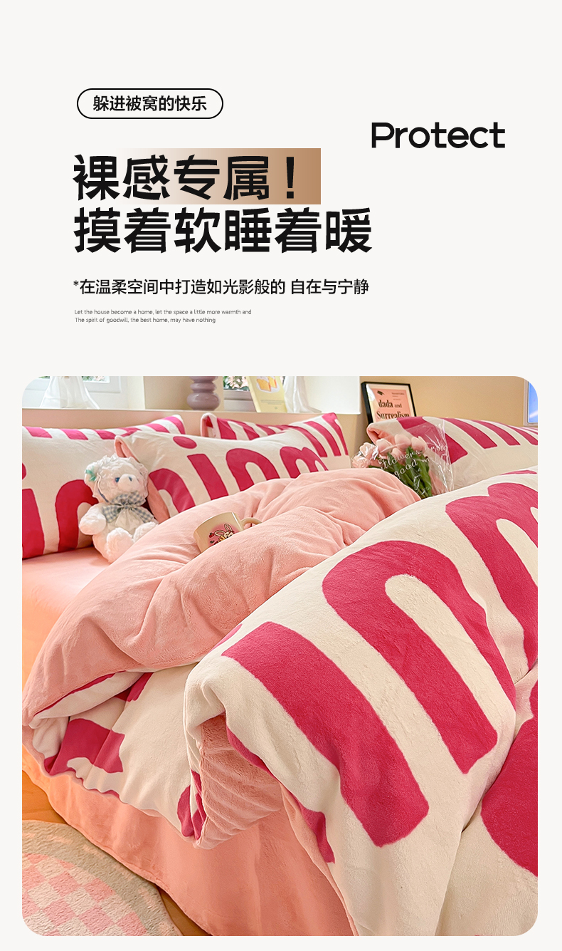 商品名称:雅居纺家纺 2025新款高克重牛奶绒印花单被套 M粉