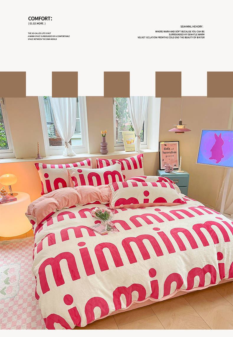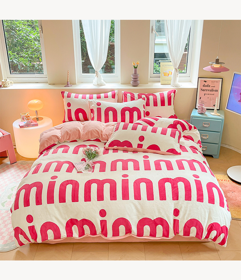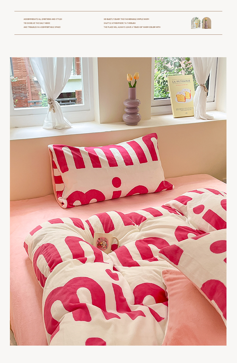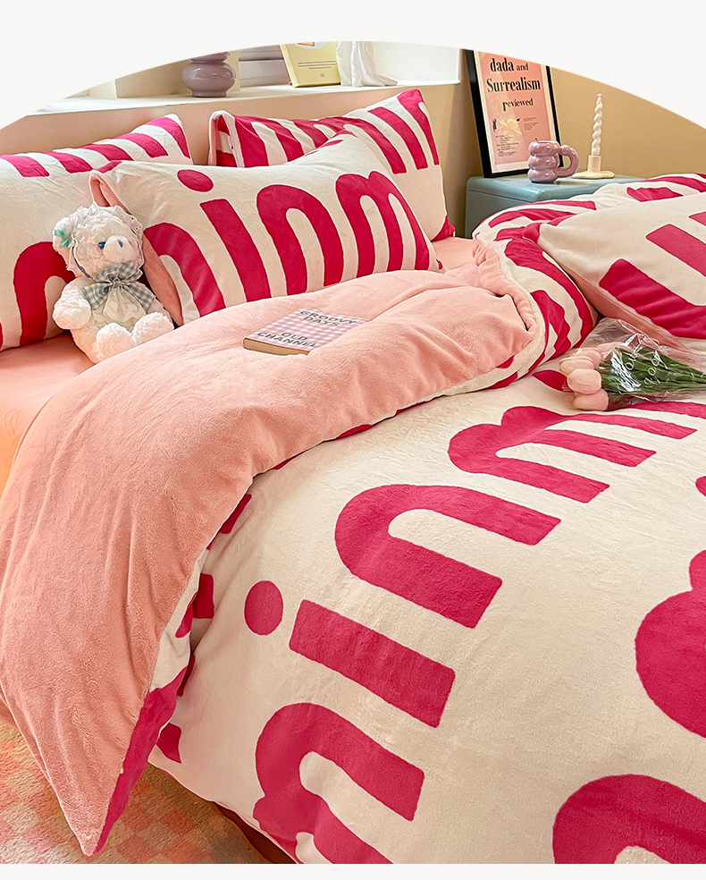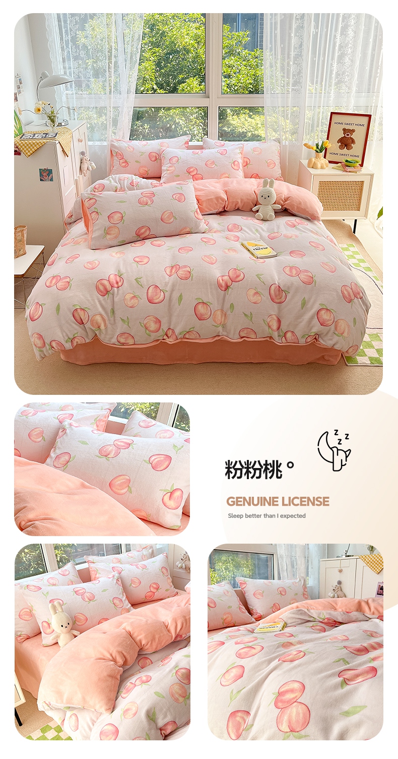 雅居纺家纺 2025新款高克重牛奶绒印花单被套 M粉