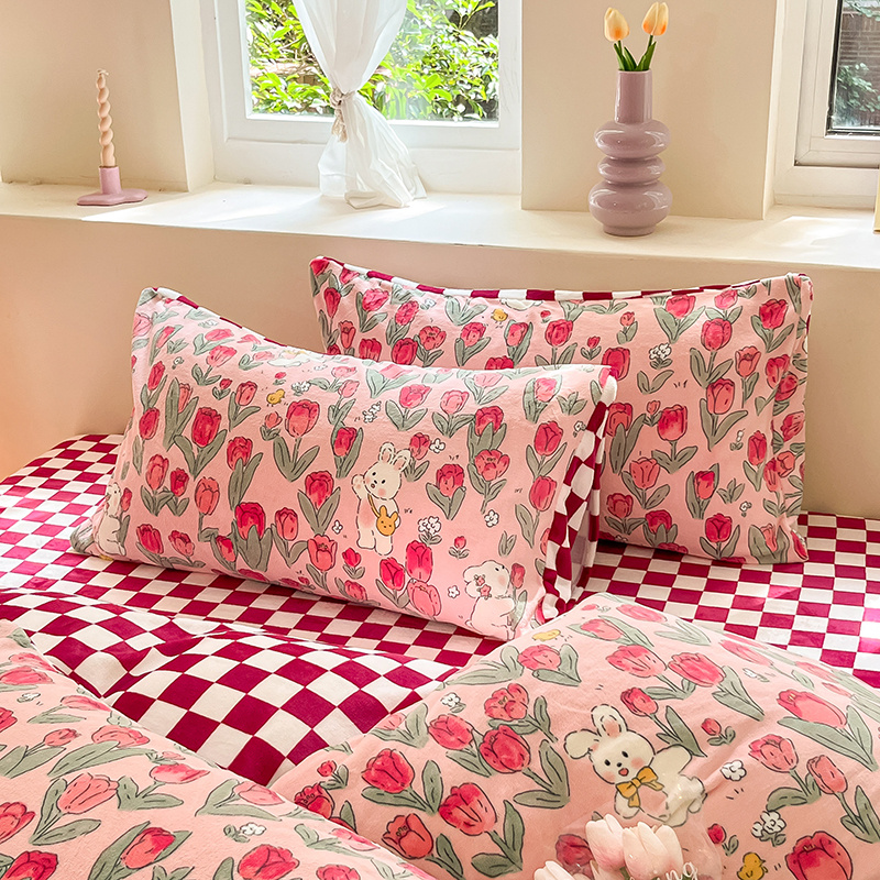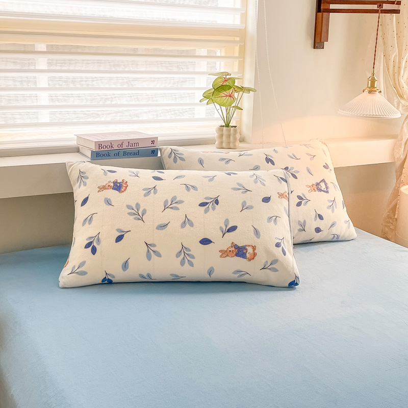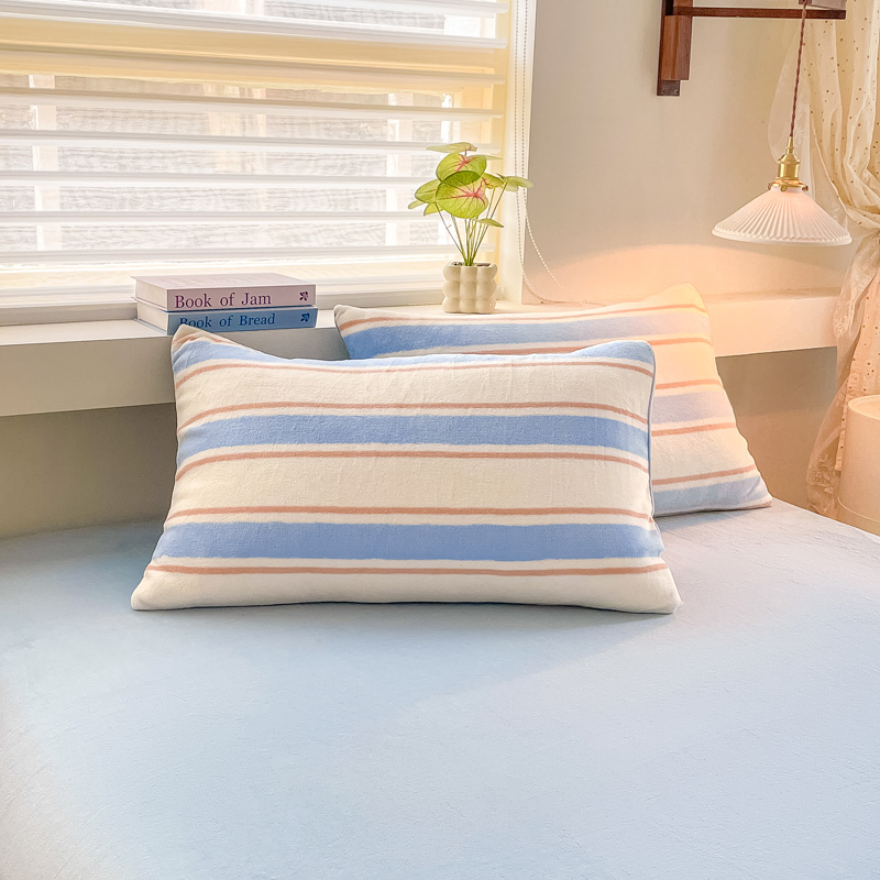 雅居纺家纺 2025新款高克重牛奶绒印花单枕套 竖条小花