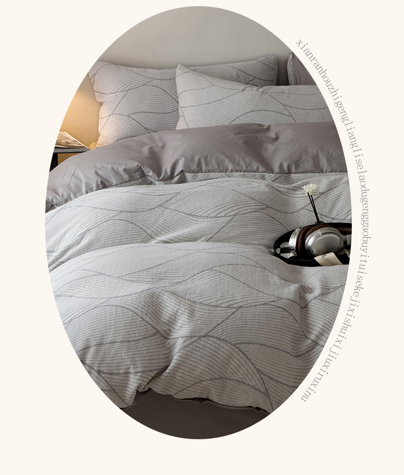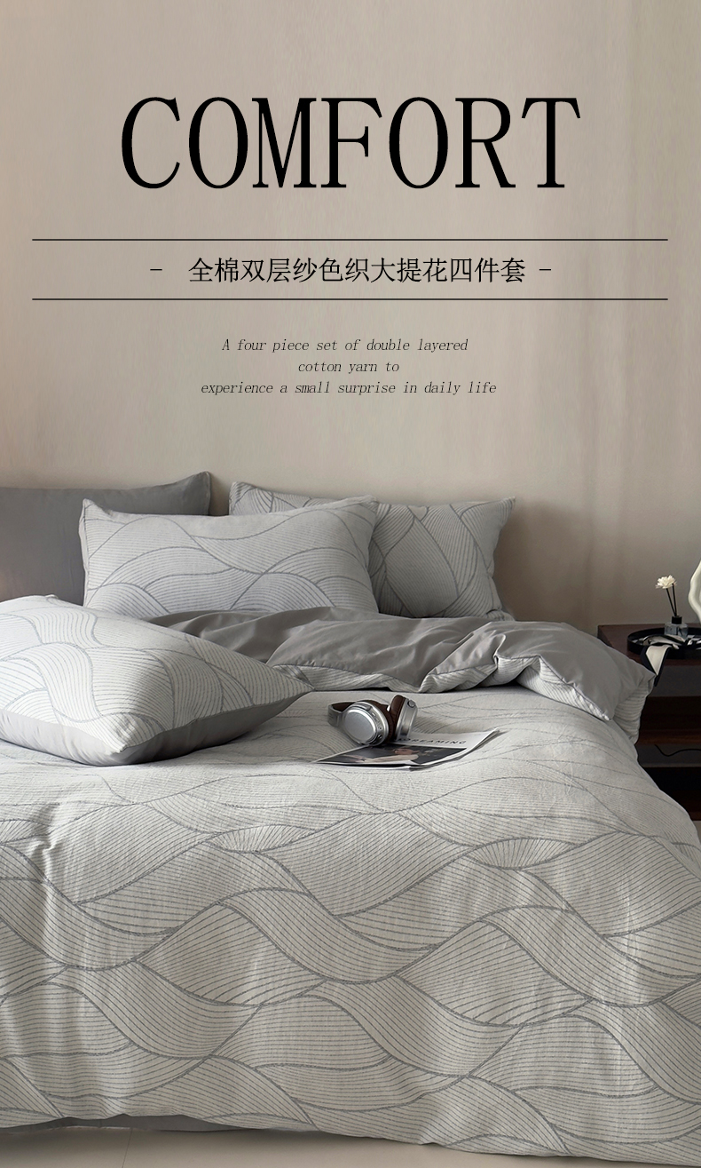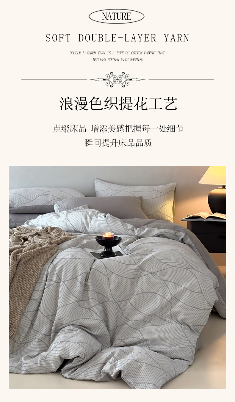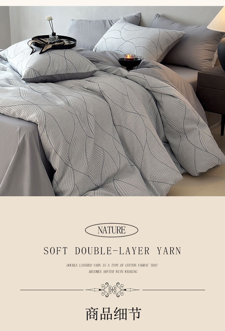 当前位置: 91家纺网 > 商品网购 > 床品套件 > 四件套 > 双层纱四件套 > 琪格格纺织 2025新款全棉纯棉双层纱提花四件套 双层纱-雾切-灰