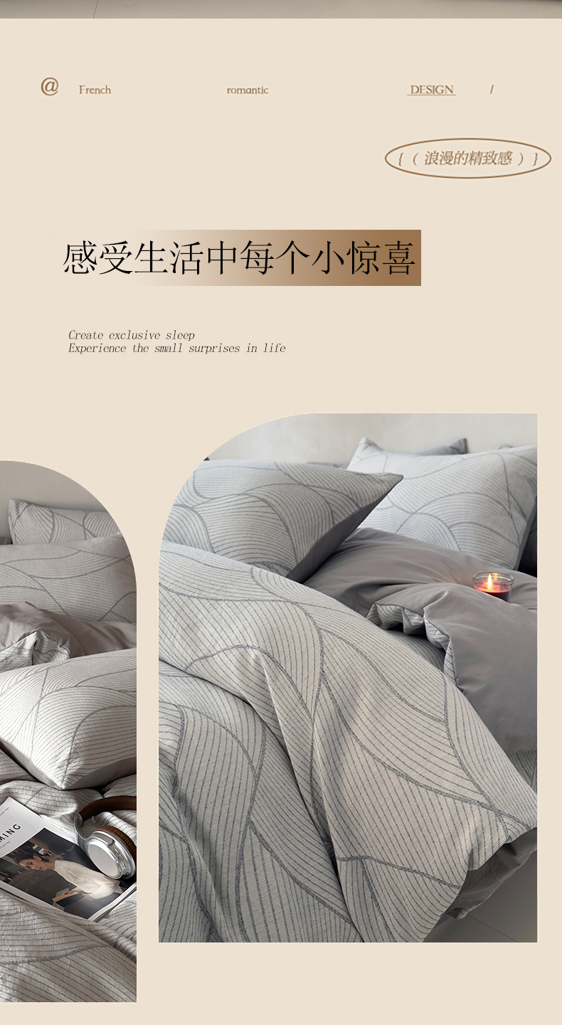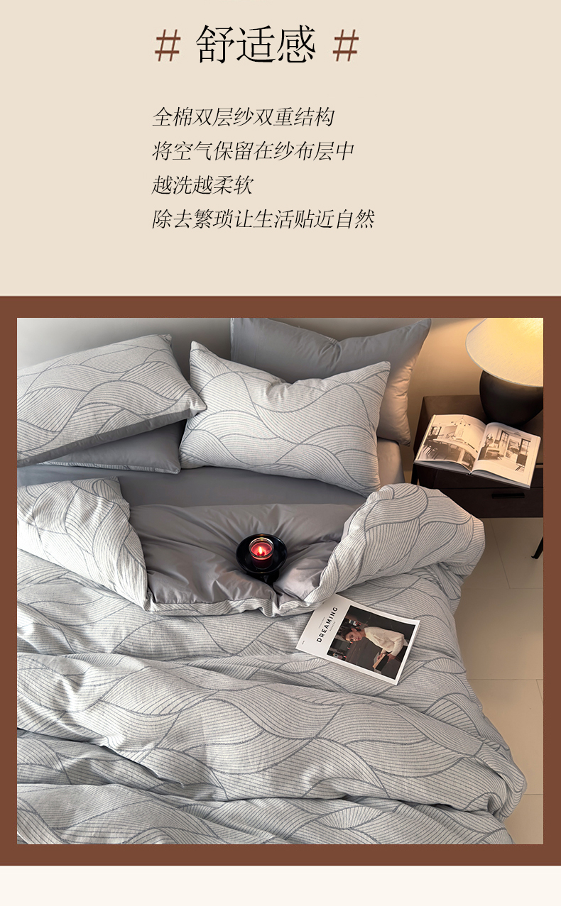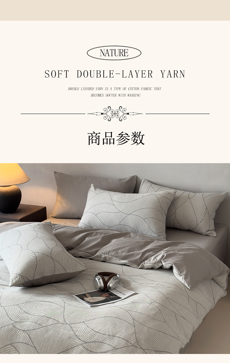 当前位置: 91家纺网 > 商品网购 > 床品套件 > 四件套 > 双层纱四件套 > 琪格格纺织 2025新款全棉纯棉双层纱提花四件套 双层纱-雾切-灰