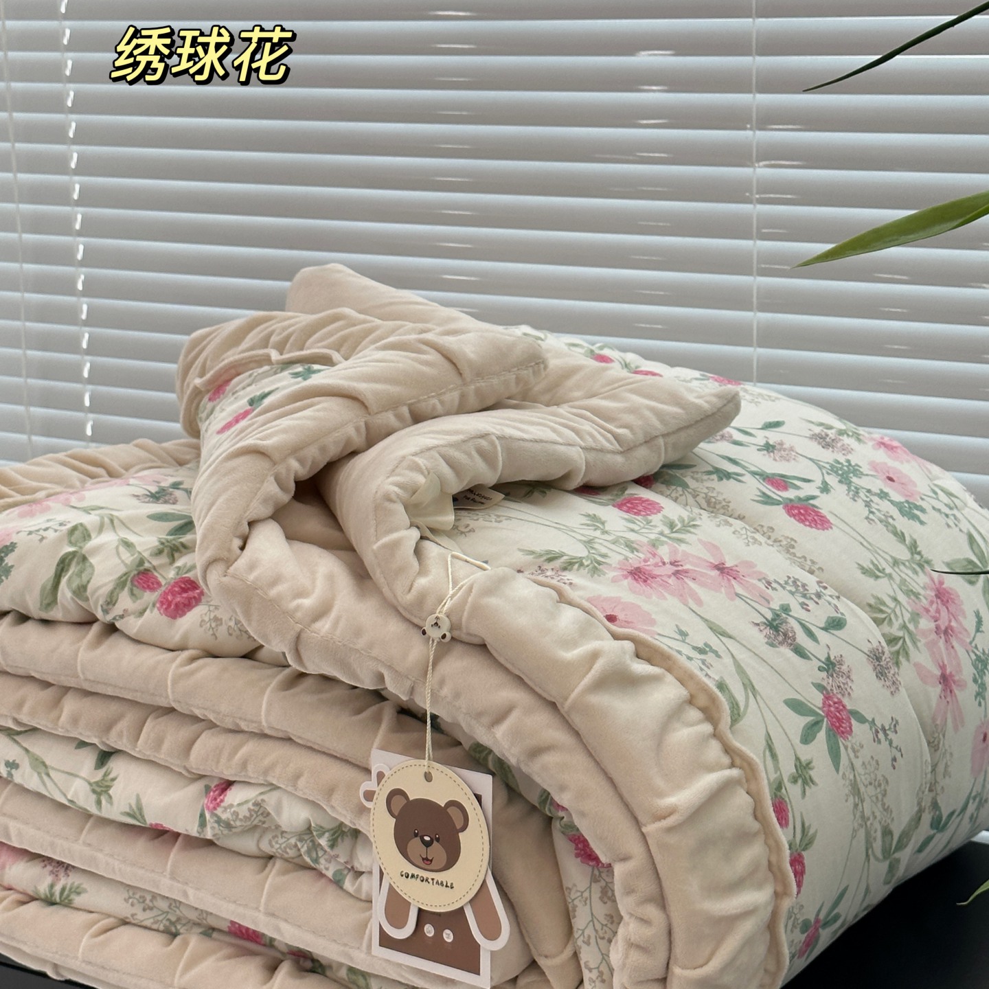 (总)佰织鑫家居 2025新款棉加绒床盖三件套花苞豆豆被四件套,梨花落,落了白