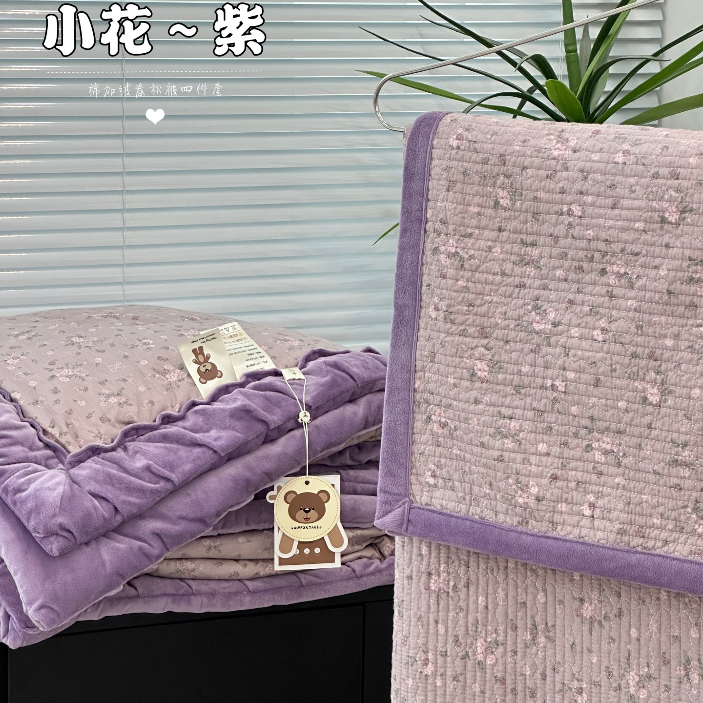 佰织鑫家居 2025新款棉加绒床盖款春秋被四件套 蒲公英