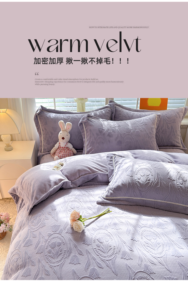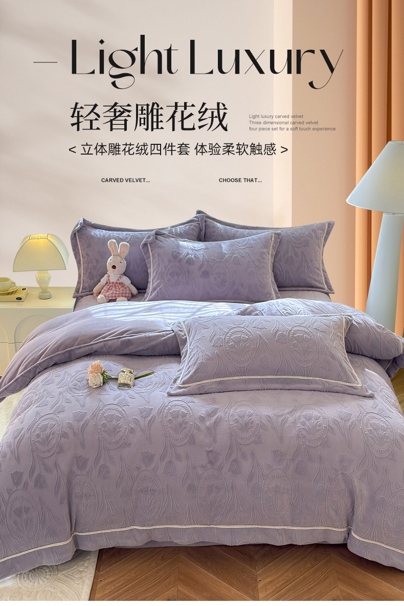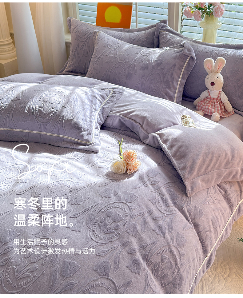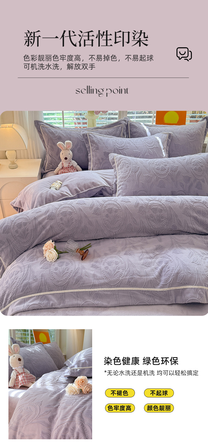 (总)艾唯希家纺 2025新款韩版全消光雕花绒工艺四件套牛奶绒-郁金之恋,郁金之恋-紫,郁金之恋-粉,郁金之恋-蓝