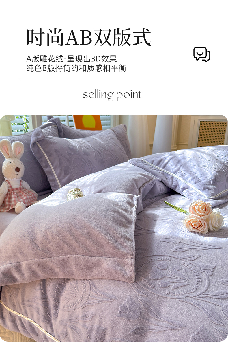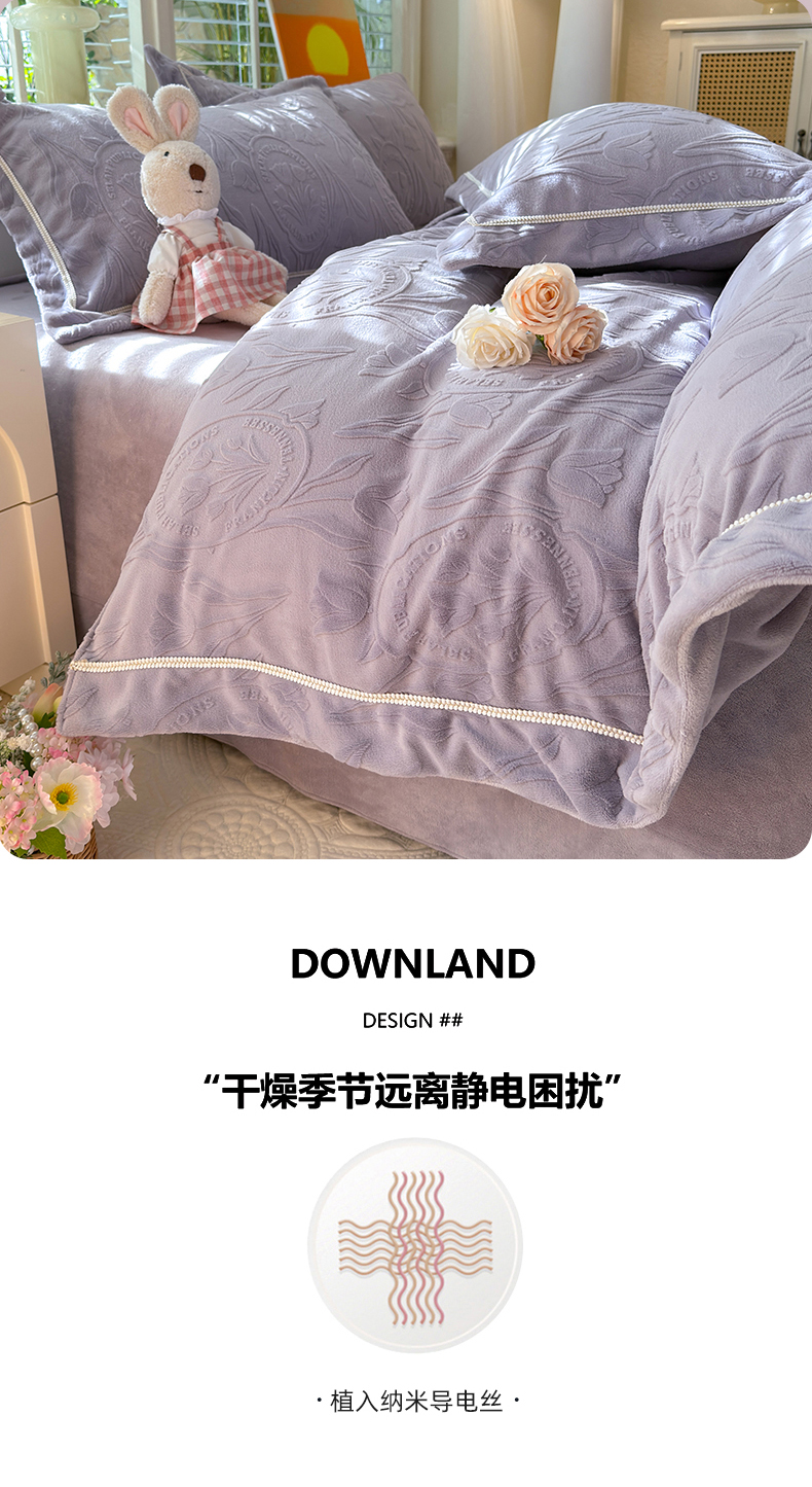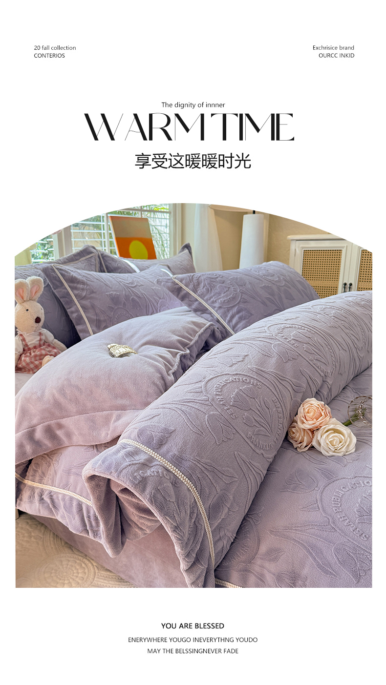 (总)艾唯希家纺 2025新款韩版全消光雕花绒工艺四件套牛奶绒-郁金之恋,郁金之恋-紫,郁金之恋-粉,郁金之恋-蓝