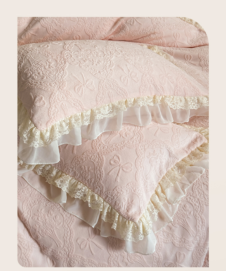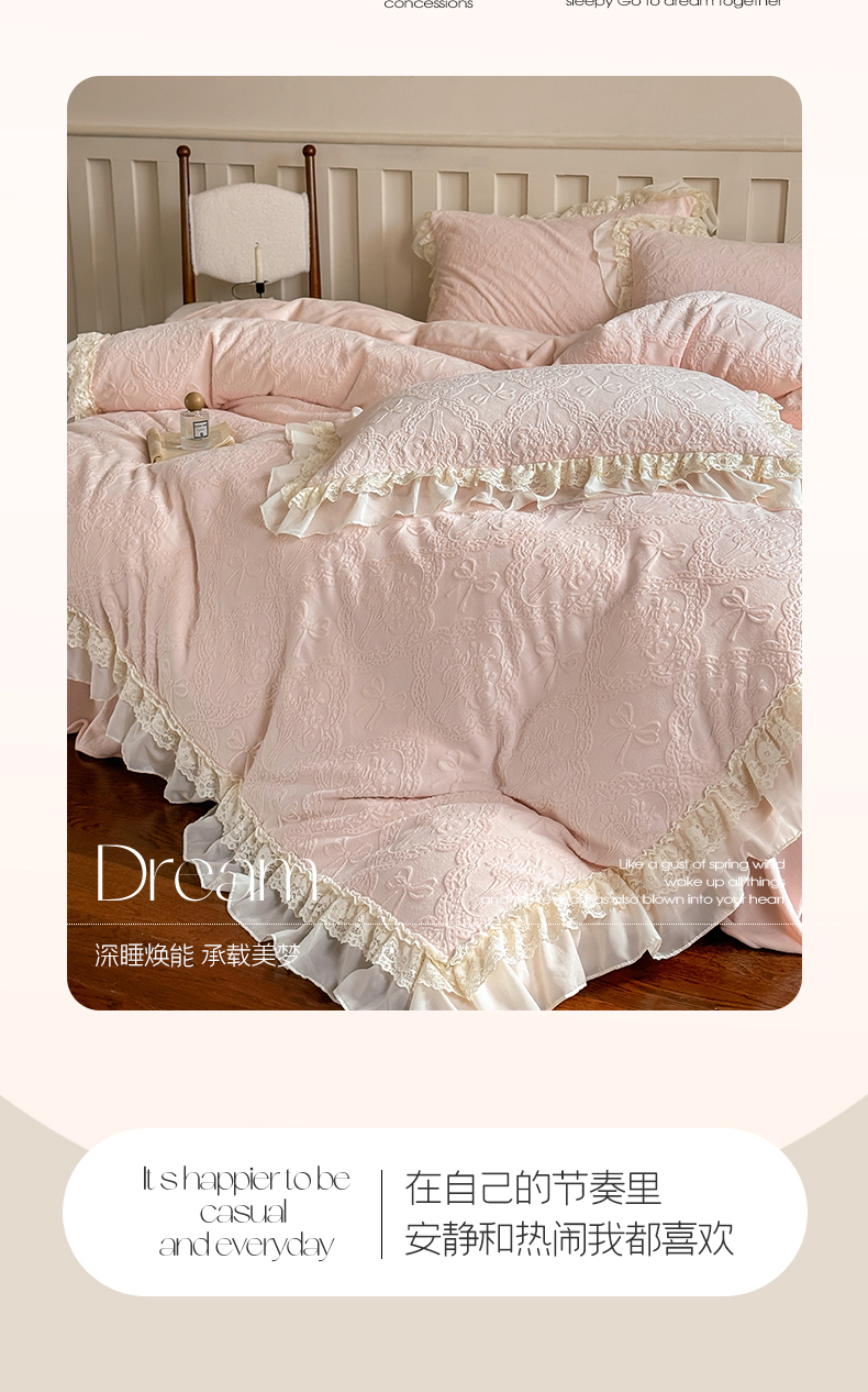 满座家居 2025新款爆款全消光牛奶绒雕花四件套蕾丝花边仙女款床盖四件套-云芙云芙-楼花粉