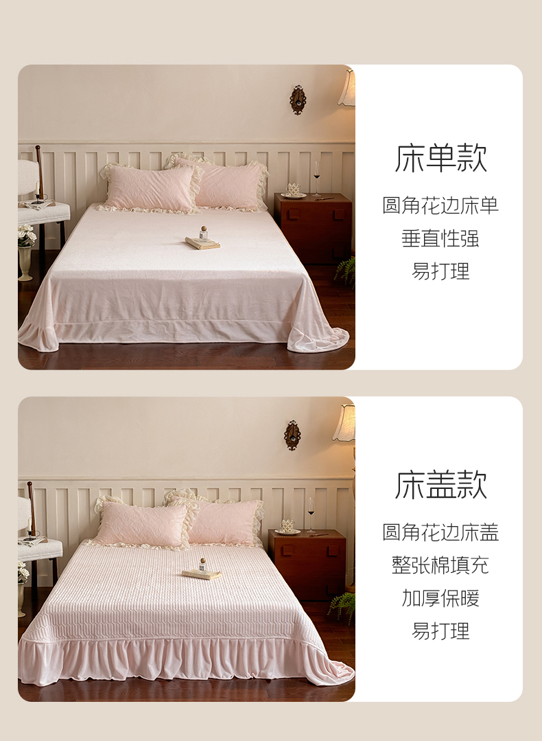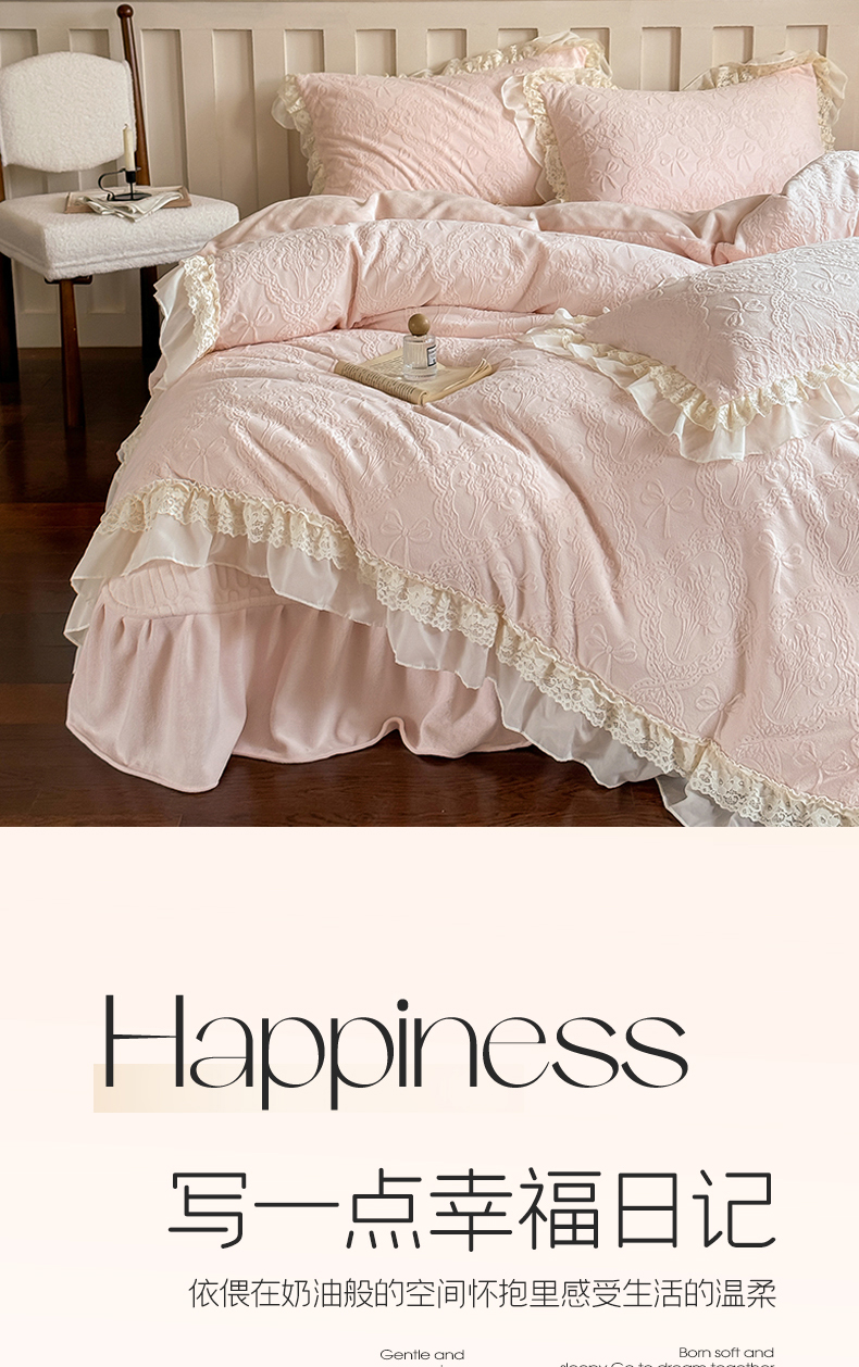(总)满座家居 2025新款清新唯美木耳边加厚牛奶绒四件套雕花绒四件套,艾莎 粉,雏菊晨露 粉,田园风景 绿,蝶恋花 粉,邂逅,安妮 粉