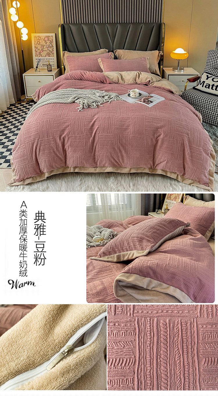 (总)2024新款ins风小红书推荐高克重纯色双拼牛奶绒四件套,莓莓生椰,抹茶芝士,奶白豆沙,奶白拿铁,浅蓝芝士,炭烤起司,芋泥奶紫,月光雾蓝